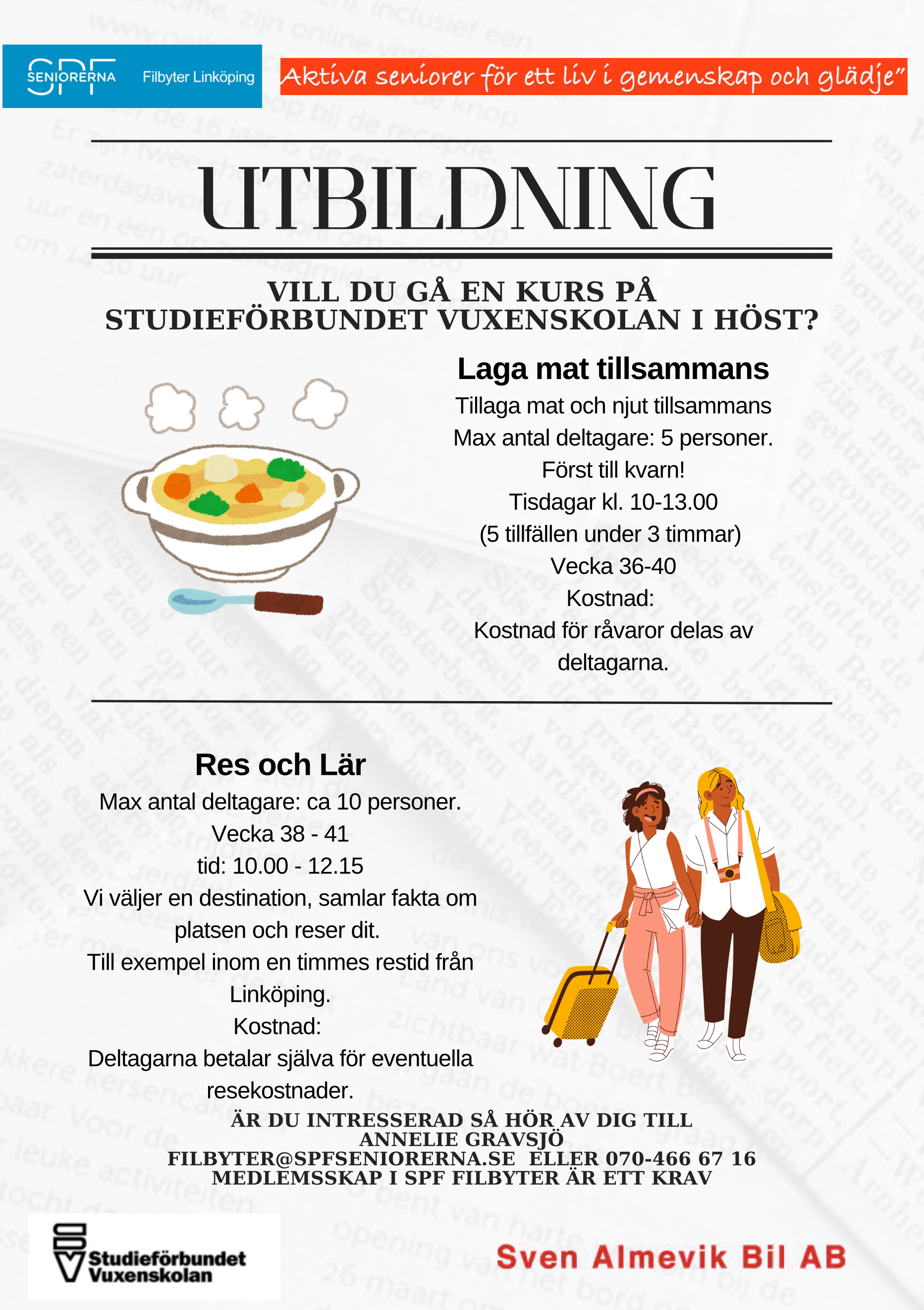 SPF Filbyter har tagit fram två intressanta kurser tillsammans med Studieförbundet Vuxenskolan