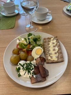 Vårens sista möte med SPF- seniorerna förflyttades till församlingsgården i Kisa, tursamt med tanke på vädret! Där fick vi först njuta av en somrig silltallrik.