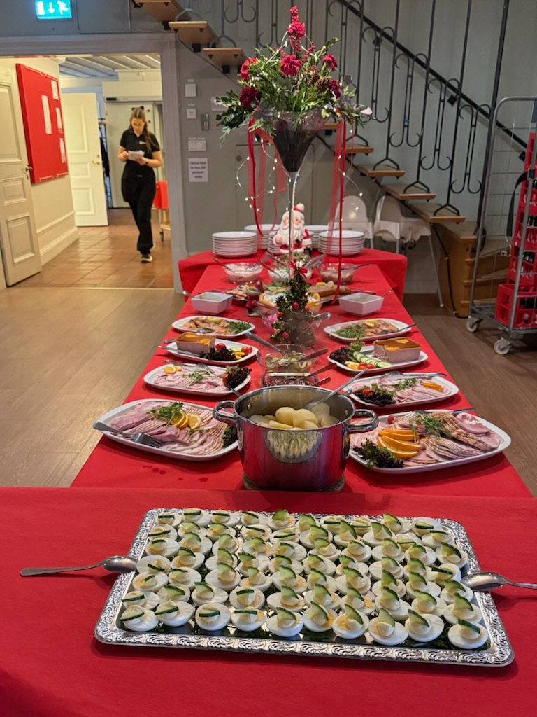 Kacka med personal hade dukat ett vackert julbord med många goda och vällagade rätter!
