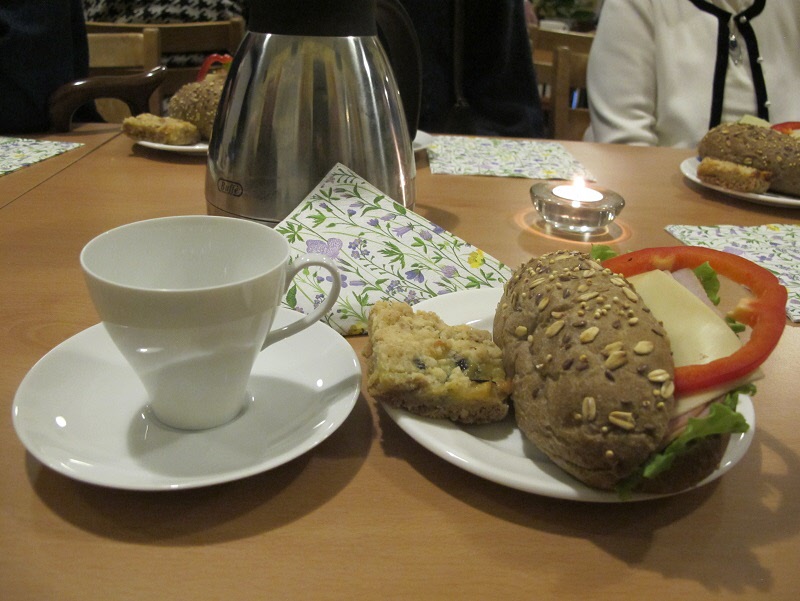 Vi serverades gott kaffe med smörgås och kaka som Aina bakat.