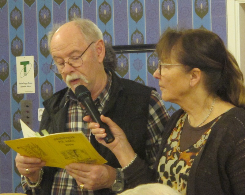 Därefter underhöll Sven Olof med att läsa skrönor på "mål" av Nisse Holm och Inger hade en frågesport där vi fick gissa på vad gamla ord och uttryck från Horn/Hycklinge betydde.