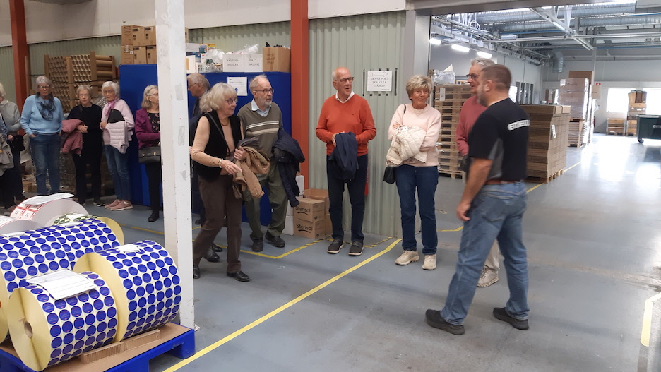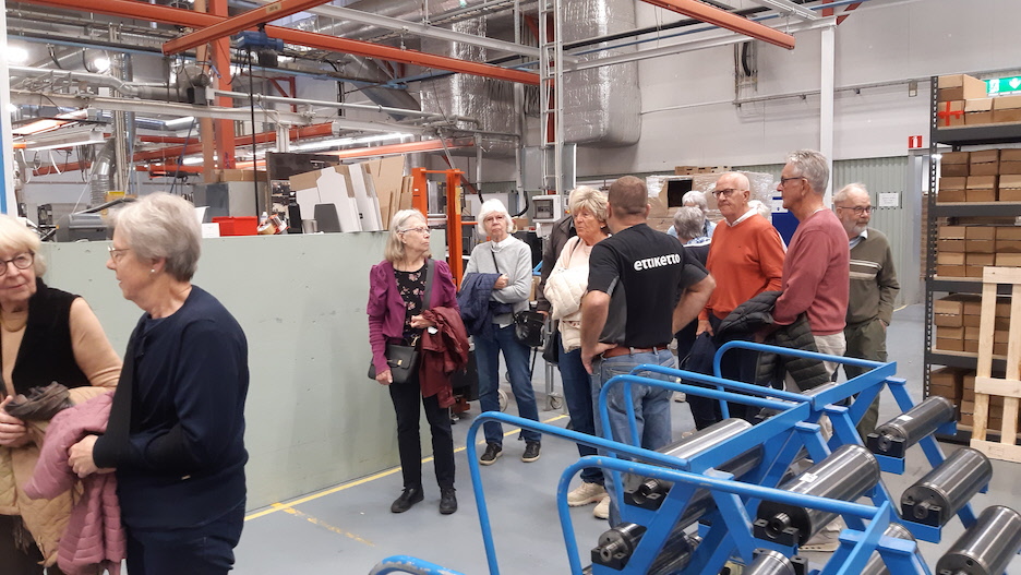 14 medlemmar deltog i studiebesök hos Ettiketto på Tvärgatan 11, Fågelsångens industriområde.