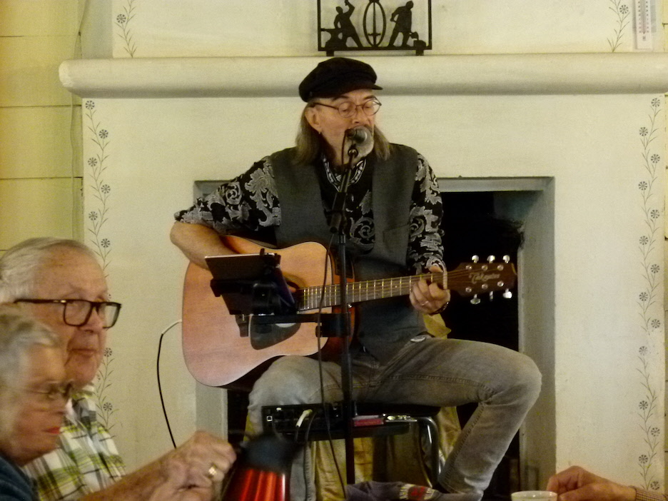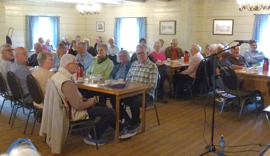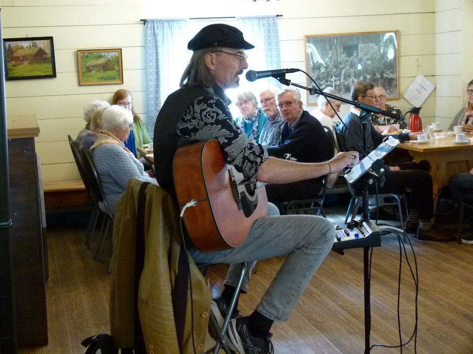 Ett gäng damer hade bakat jättegoda bullar och kakor som vi fick avnjuta under tiden som Mathias Brandin Beltramo stod för underhållningen. Hans repertoar är bred och han fick oss att sjunga med ibland i både kända och okända visor.
