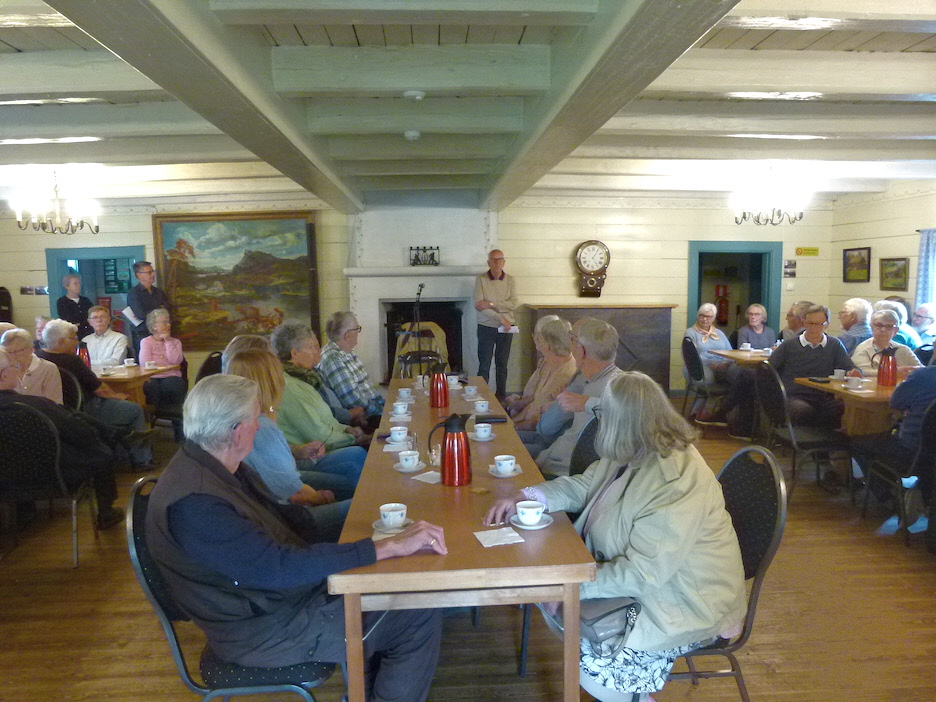 Hembygdsgårdens stora sal fylldes med fikasugna SPF-are (74 pers). Conny Holmqvist hälsade oss välkomna och informerade om nästa träff som blir vid Smedstorp den 11 aug.