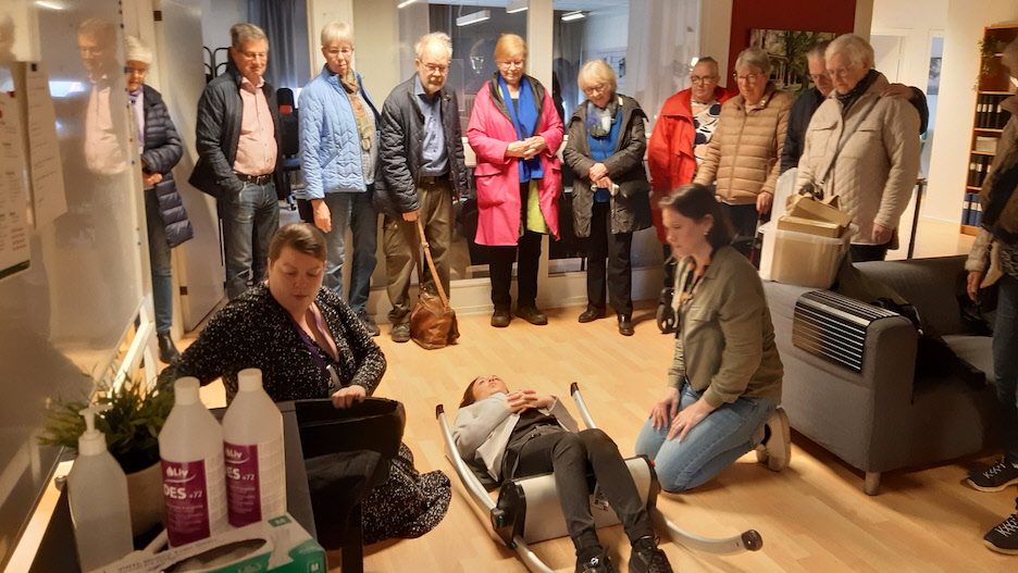 Många frågor kom löpande under hela besöket och samtalen blev informativa då all personal på ett engagerat sätt förklarade och berättade om olika situationer, som kan inträffa under ett pass i hemtjänsten.