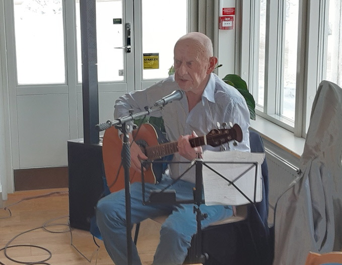 Det serverades kaffe med smörgås innan Dag Sjöholm musiker och trubadur spelade och sjöng en blandning av gamla och egna låtar.