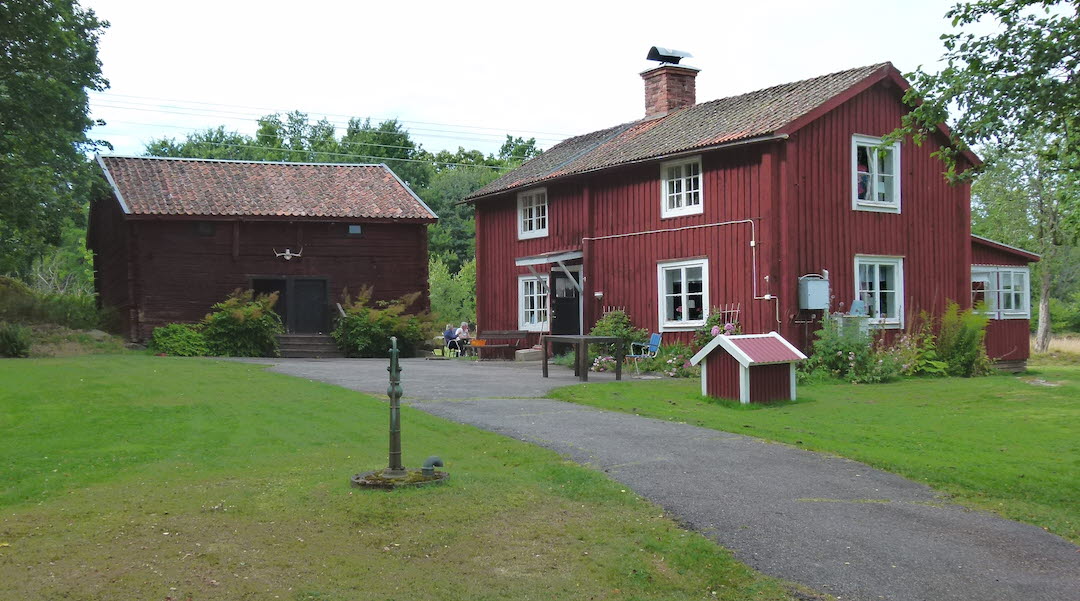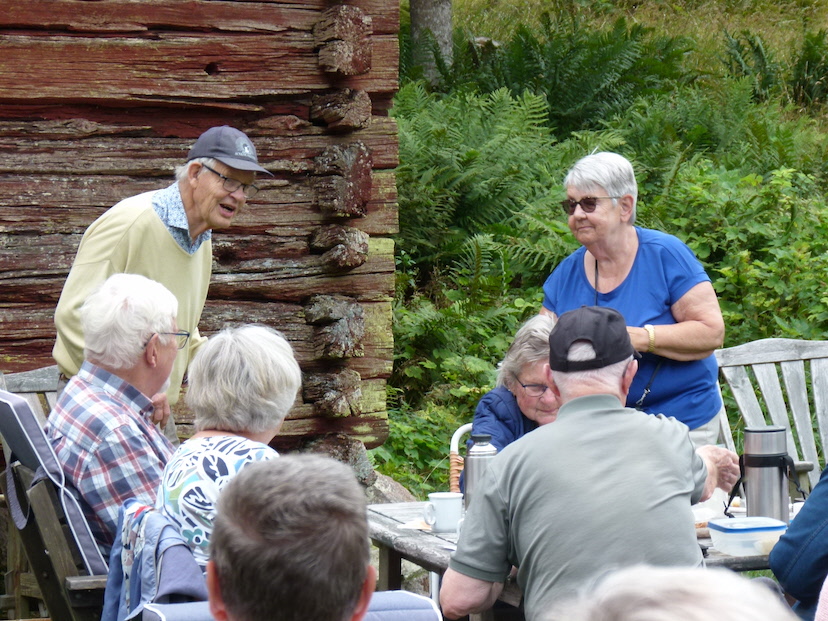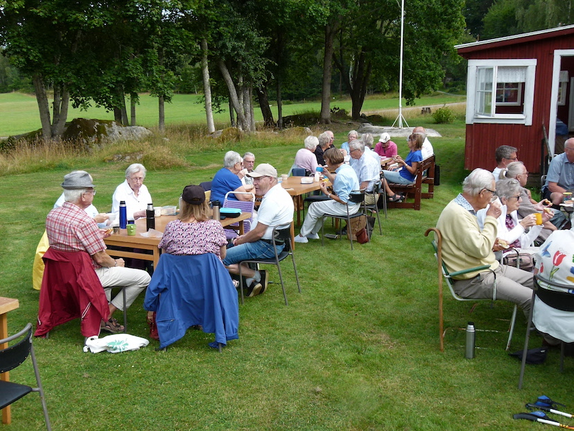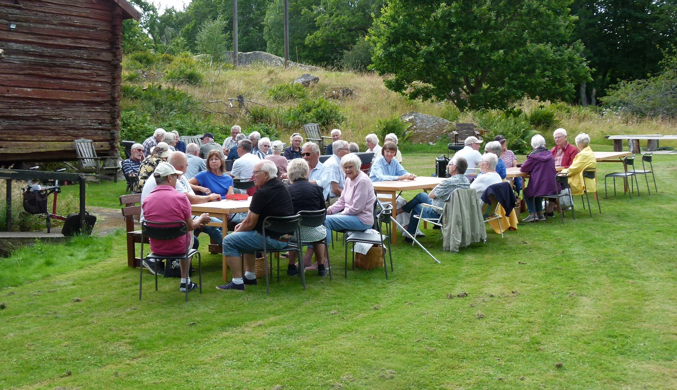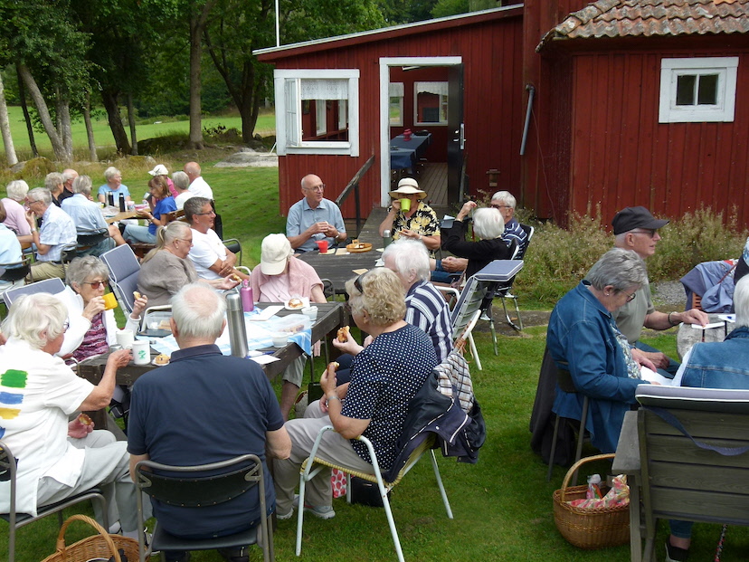 Föreningens augusti-utflykt blev lyckad vid gården Smedstorp som ligger invid vägen mot Önhult-Dalhem. Gården arrenderas av MK Blårök Åtvidaberg som rustat upp stället och gjort det trivsamt. Kjell Broberg från ”Blårök” hälsade oss välkomna och informerade om gården.