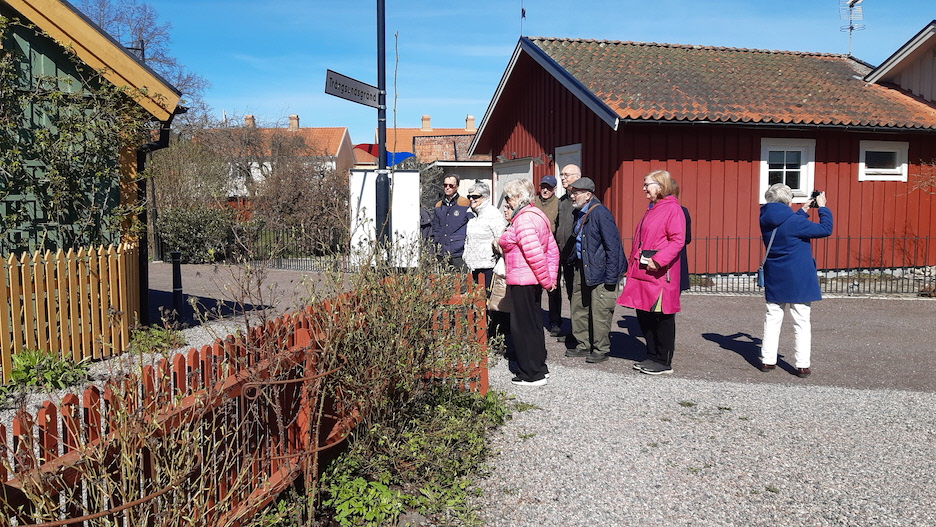 Efter fikapausen rullade vi mot Söderköpings resecentrum där två duktiga guider mötte upp för stadsvandring bland flerhundraåriga kulturbyggnader vid smala gränder och medeltida kyrkor. De flesta av oss besöker nog kanske enbart slussarna och Glassrestaurang Smultronstället och missar Söderköpings intressanta kulturhistoria. Stadsvandringen avslutades vid restaurang Söderköpings Brunn där vi serverades en alldeles fantastisk ”Wallenbergare”.