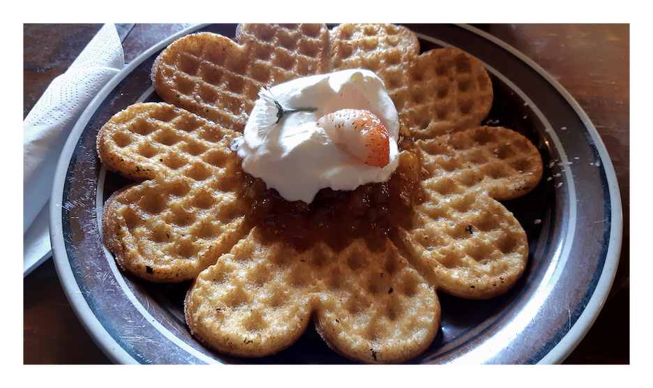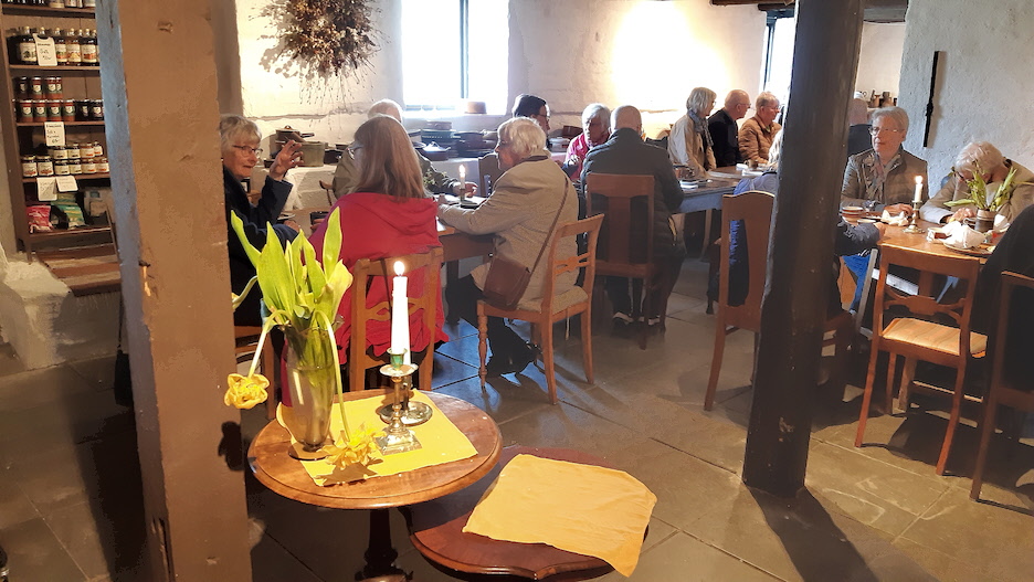 Sista stoppet med bussen gör vi hos Kafé Lapphem i Borkhult hos systrarna Matilda och Elisabet kända för sina kaffe- eller matvåfflor. Före fikat fick vi en snabb historiebeskrivning om Borkhult och tidigare industrier.