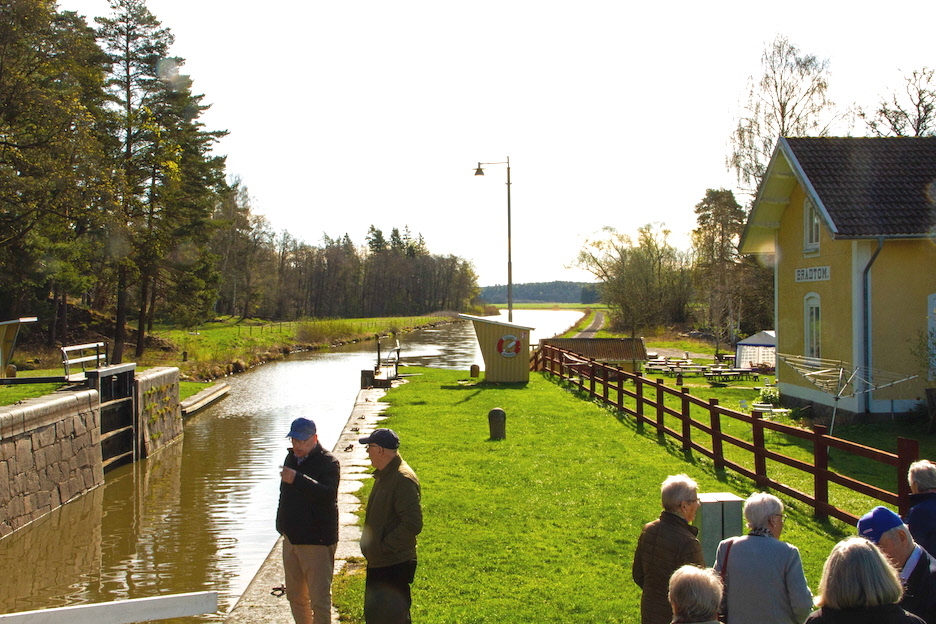 Vi startade från Ålundaplan vid kl.08-tiden och rullade mot Brådtom Sluss med vandrarhem och café’ en mysig plats vid Göta kanal där vi fick ”bussfika”.