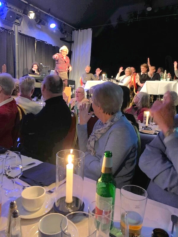 Detta är nog Östergötlands svar på Wallmans salonger med duktiga skådisar och musiker, som agerar både som aktörer och hotellpersonal. Många i publiken blev också utsatta för bra och dråpliga skämt, vilket gav upphov till många skratt. Mätta och belåtna och vad jag tror de flesta nöjda med en lättsam torsdag eftermiddag.