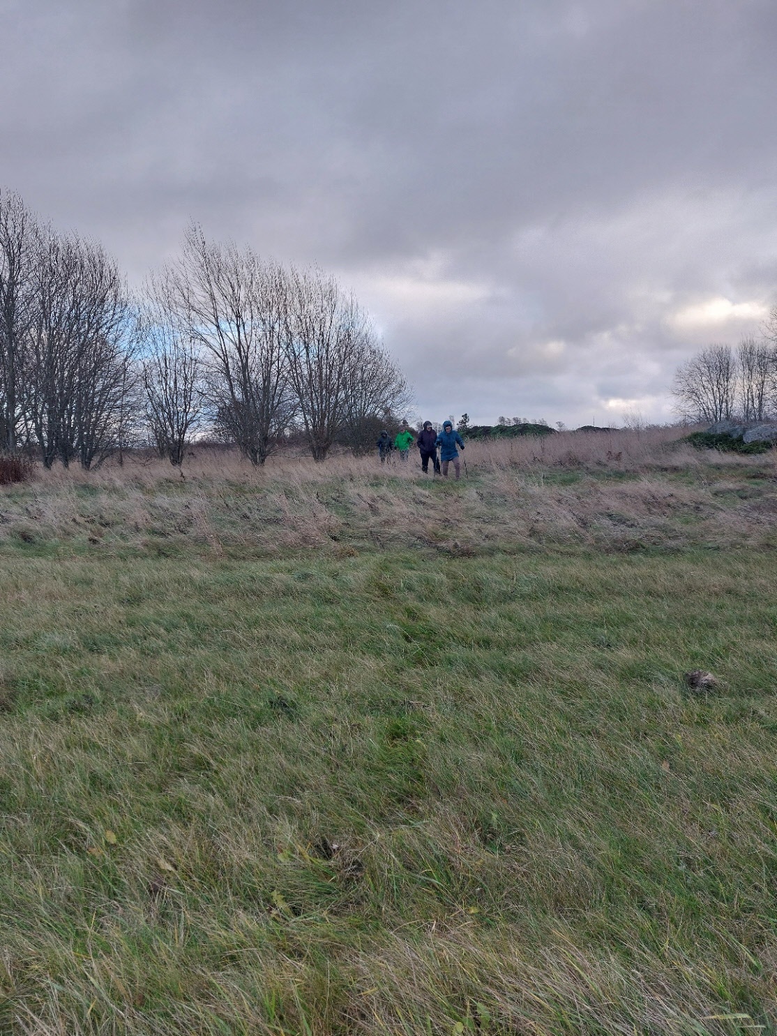 Uppehåll men lite blåst stoppar oss inte för en promenad på ca 2km.