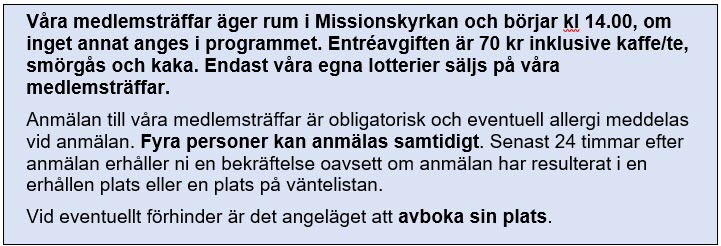 Medlemsträffar hösten 2025