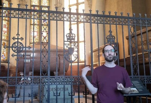 Mätta och belåtna vandrade vi sedan mot Riddarholmskyrkan där vår nästa guide, Adam Westlund, mötte oss. Adam tog oss på ett mycket strukturerat och intressant sätt, genom Riddarholmskyrkans historia från 1200-talet fram till våra dagar.