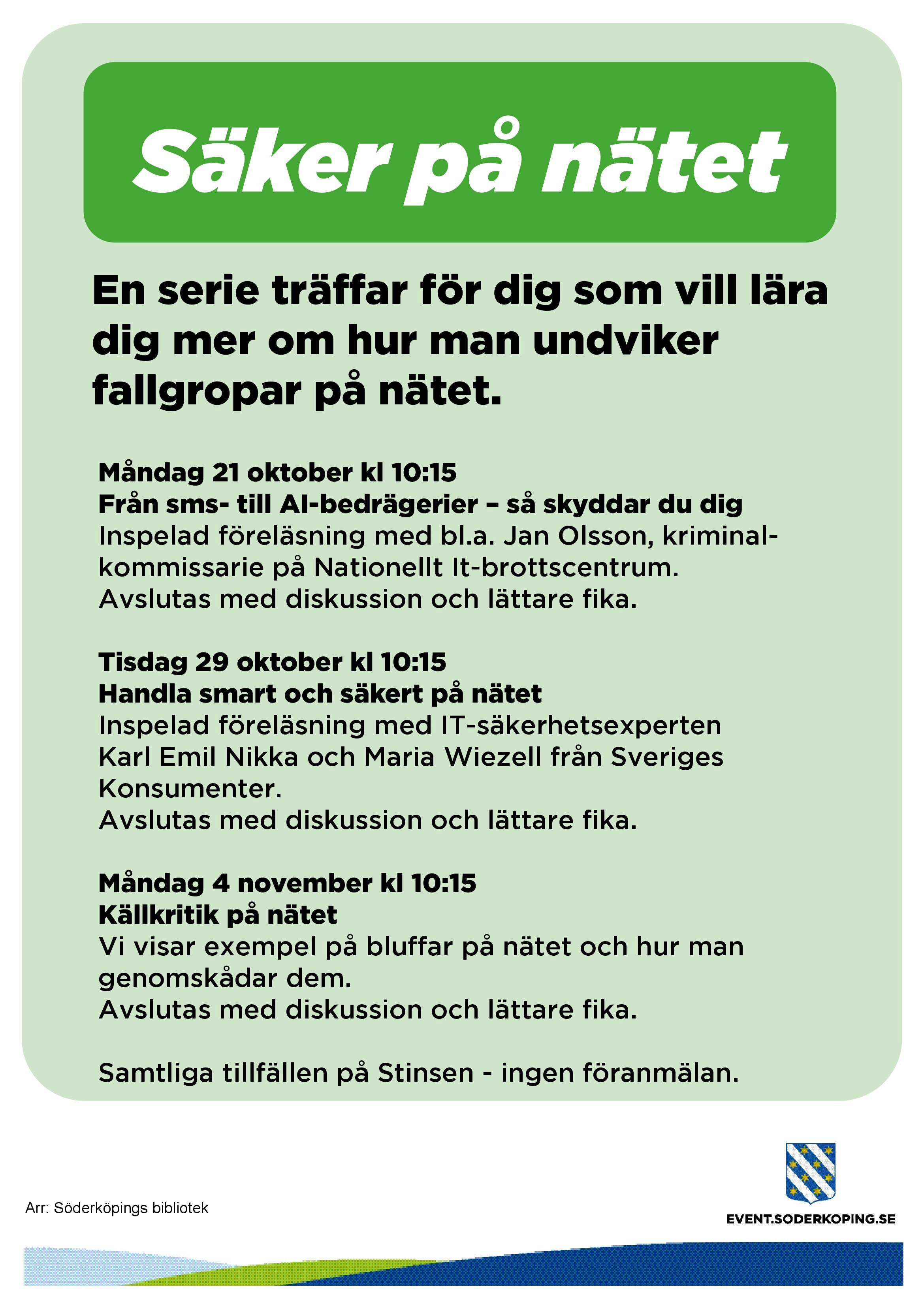 Vid 3 tillfällen får du lära dig mer om hur man undviker fallgropar på nätet!