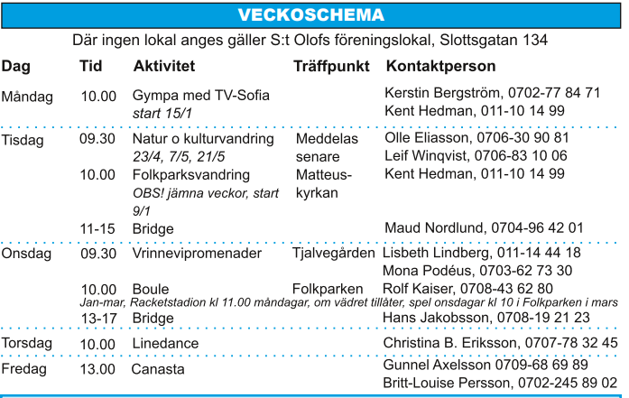 Här nedan hittar du vårt Veckoschema för hösten 2025.