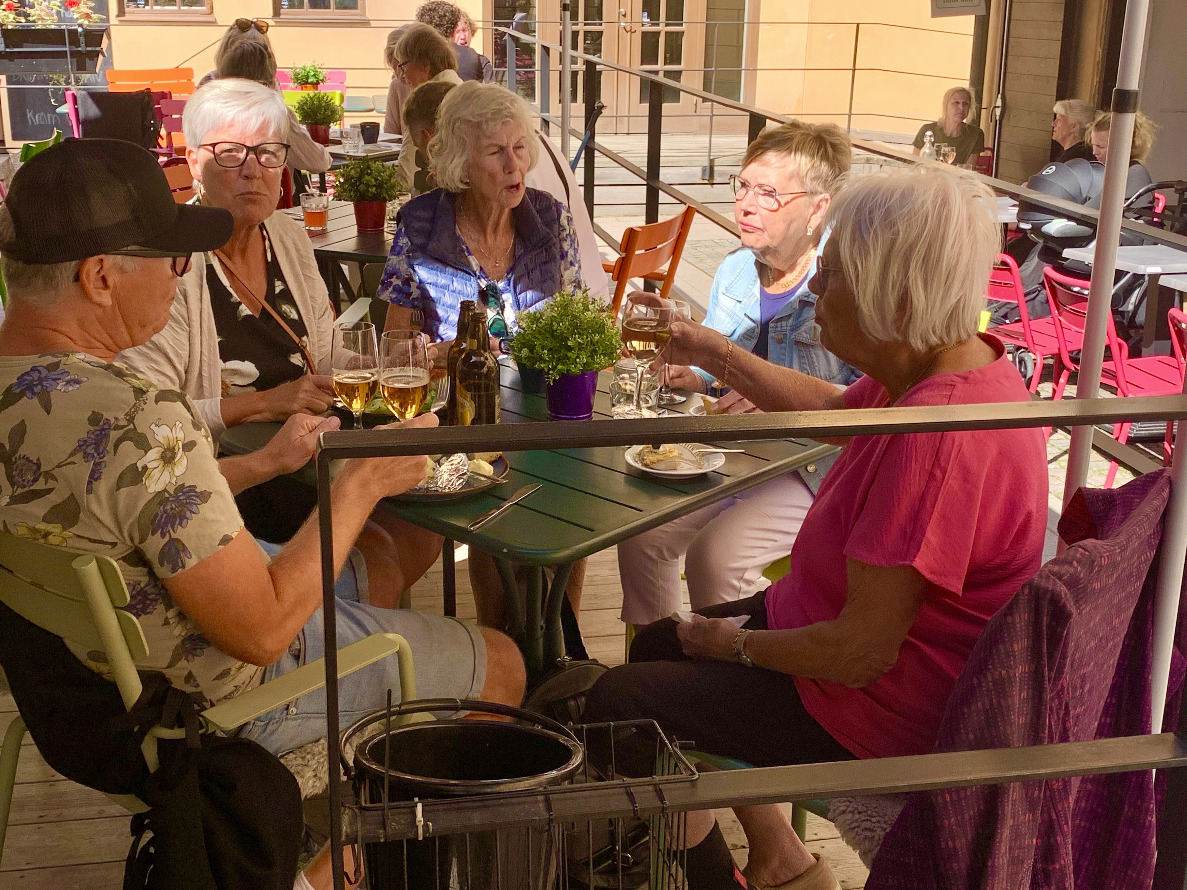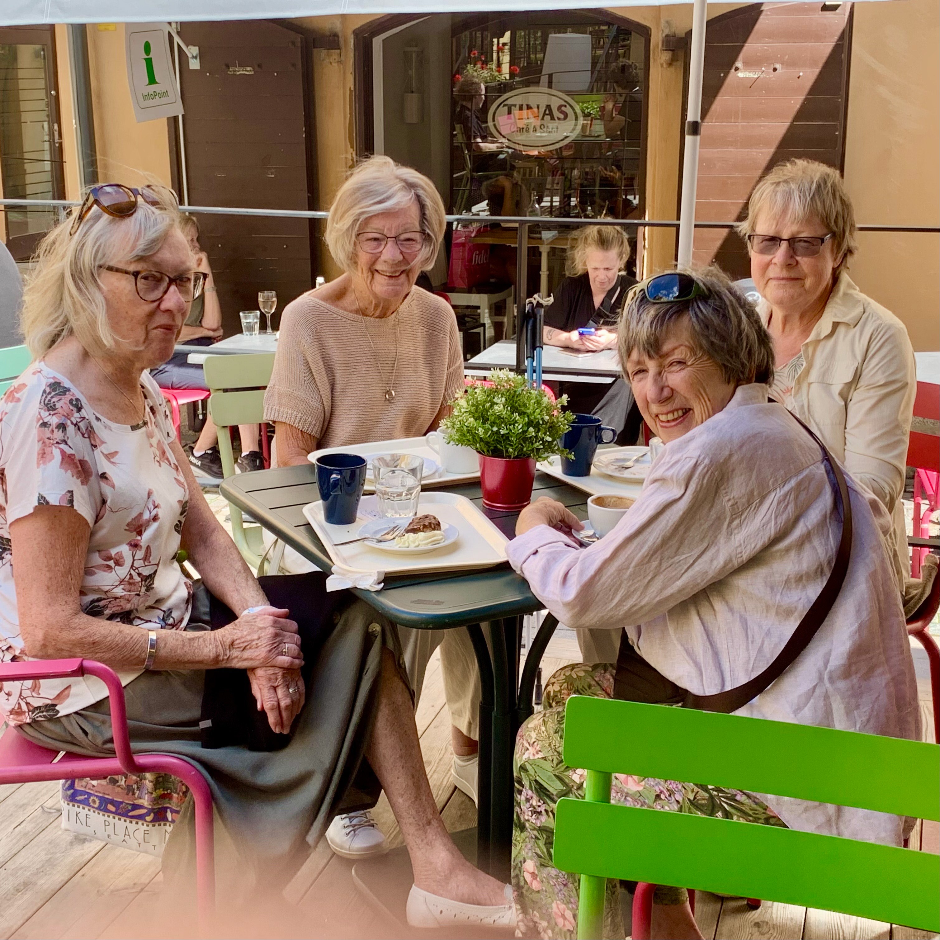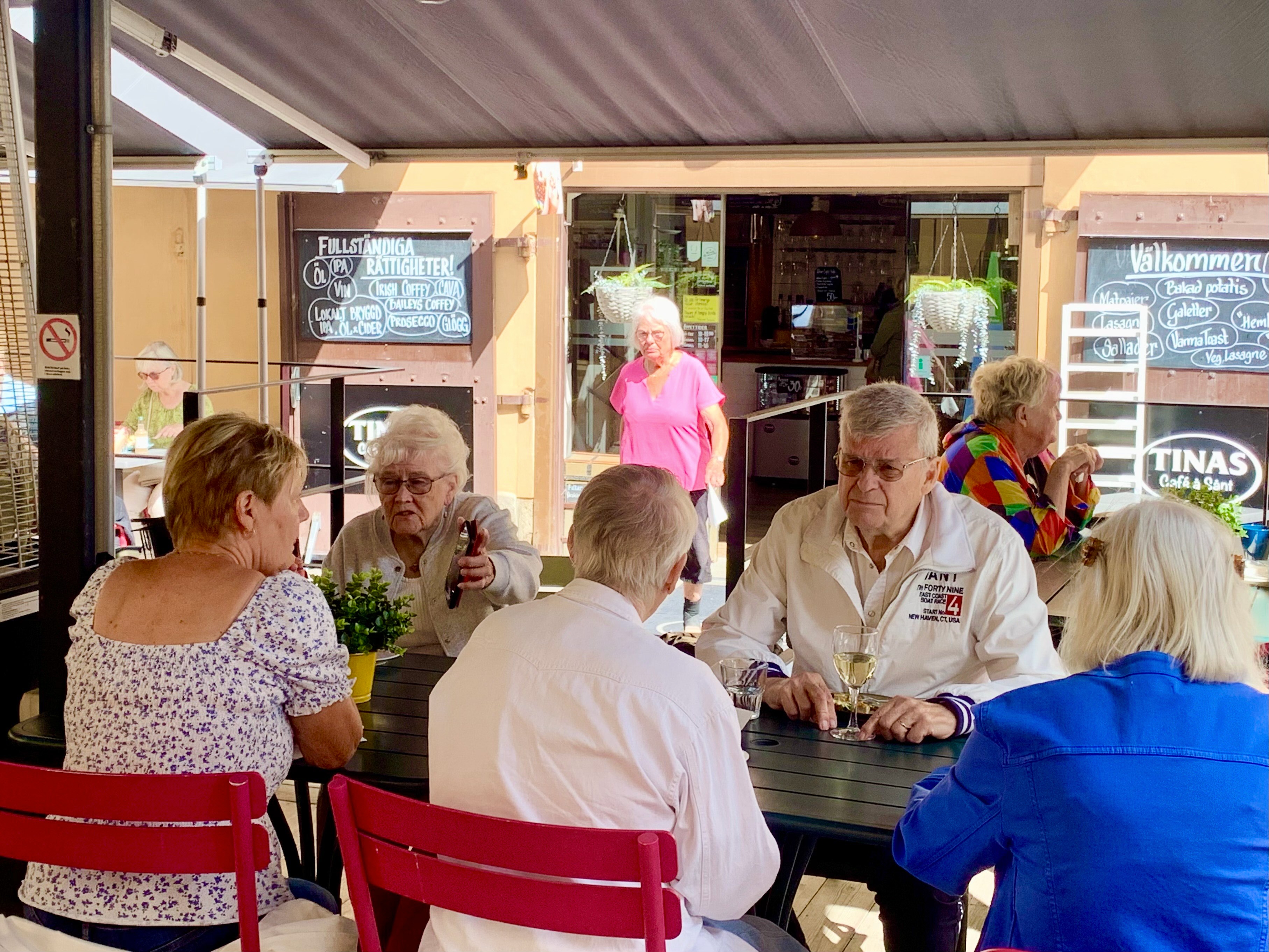 Sommarens sista "Kvar i stan" den 5 augusti 2025 på Tinas Café & Sånt. Vi var 24 personer som hade trevlig samvaro med kaffe, vin och kanske litet mat också? Som vanligt hade vi mycket att prata om och stämningen var hög.