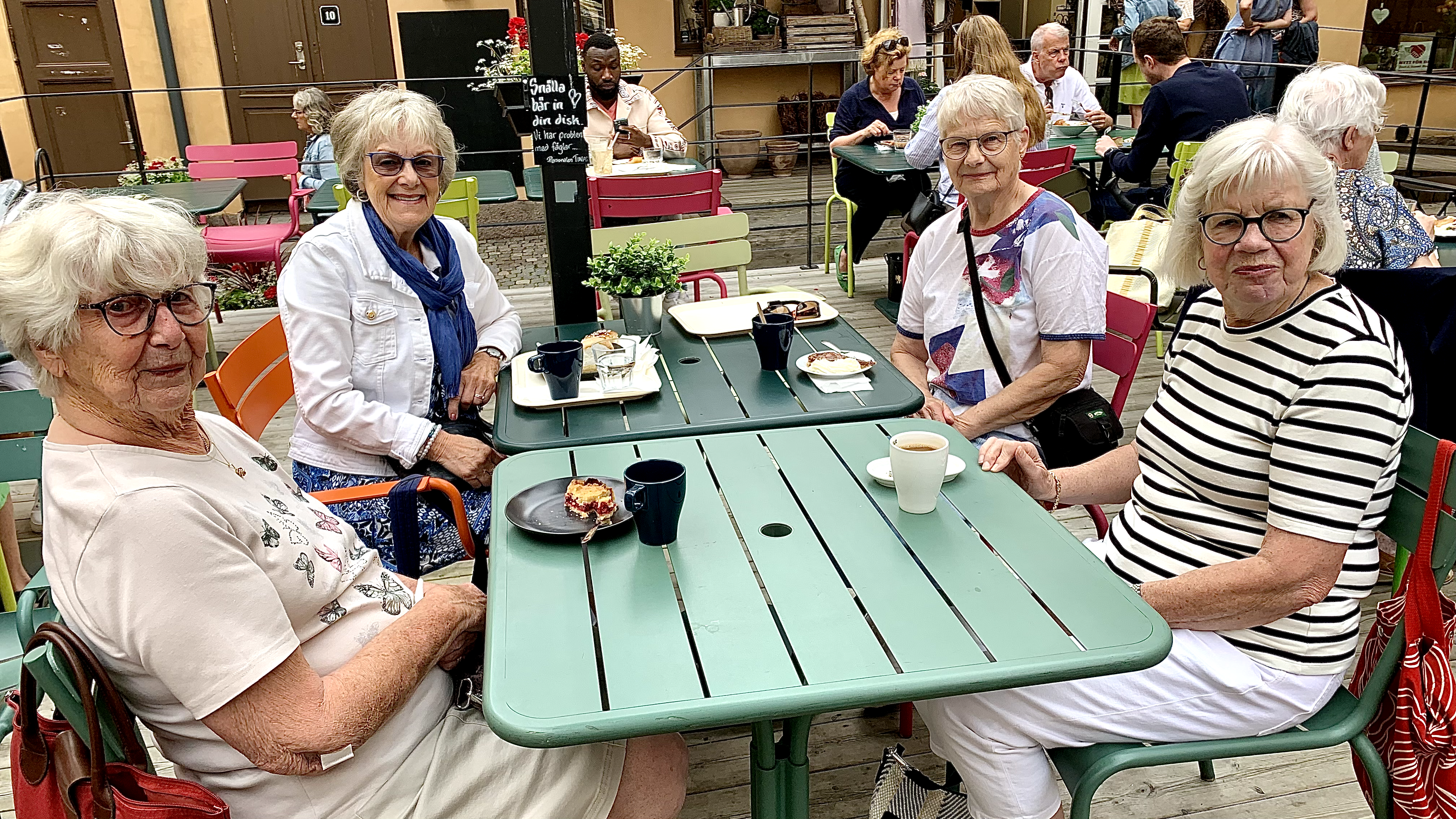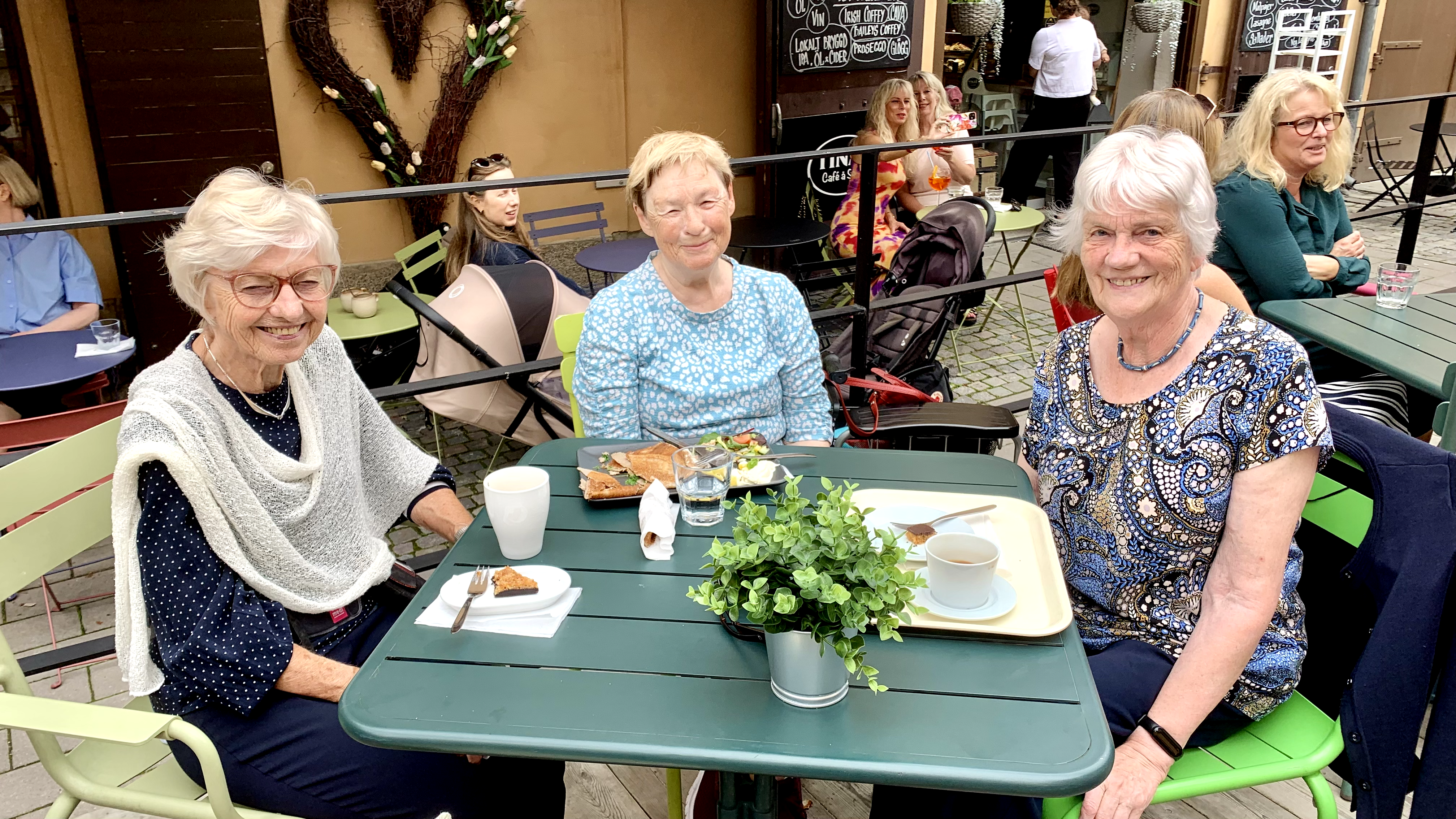 16 juli träffades vi på Tinas Café & Sån´t för en gemensam fikastund och för att umgås. Det verkar som det bara är damer kvar i stan för några herrar såg vi inte till bland 17 medlemmar. Trots detta var stämningen hög och vi hade trevligt.