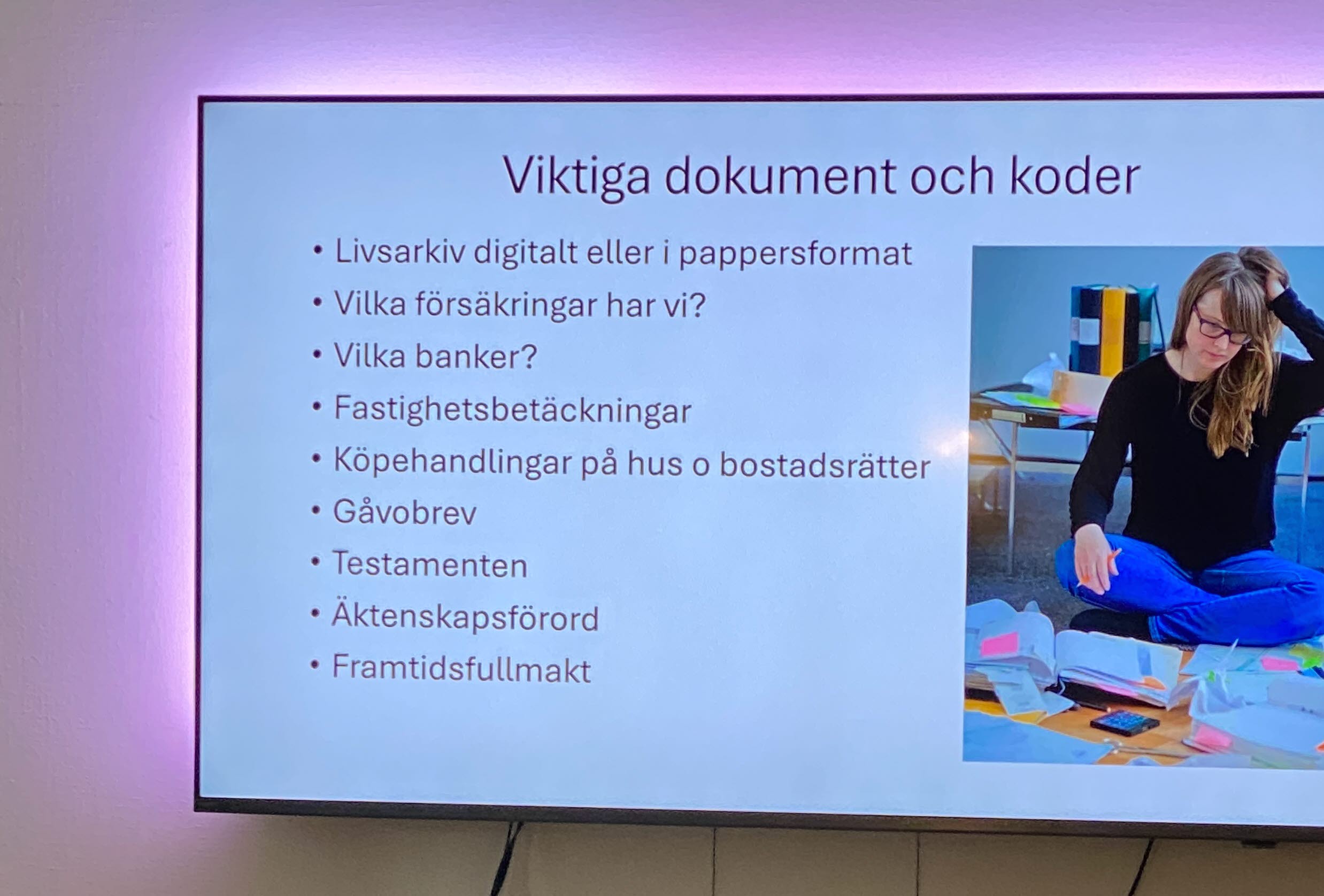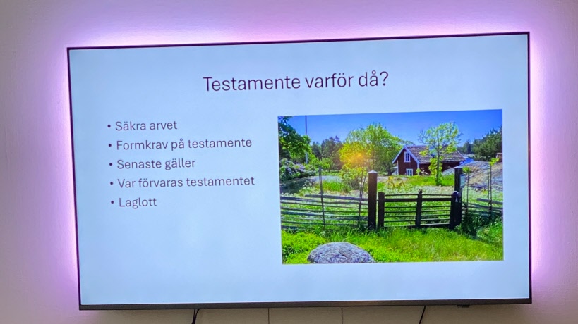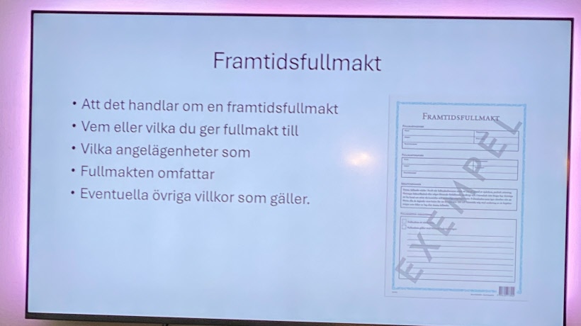 23 oktober fick vi besök av Fredrik Blomberg från Östgöta Begravningsbyrå. Han informerade om arv, testamente, bodelning, särkullebarn och framtidfullmakt m.m.