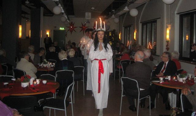 Traditionsenligt anordnade vår förening luciafest i Fontänens vagnhall, denna gång måndagen den 14 december. Ett 60-tal besökare fick njuta av skönsång, glögg, gröt med skinksmörgås och kaffe med kaka. Björkö Fria Gymnasium stod för den stämningsfulla musiken, där solister gjorde fina insatser ackompanjerade av piano, gitarr och fiol. Rörda i våra sinnen och välmående i våra magar gladdes vi med lotterivinnarna. Som vanligt dröjde sig många kvar för trivsamt eftersnack.