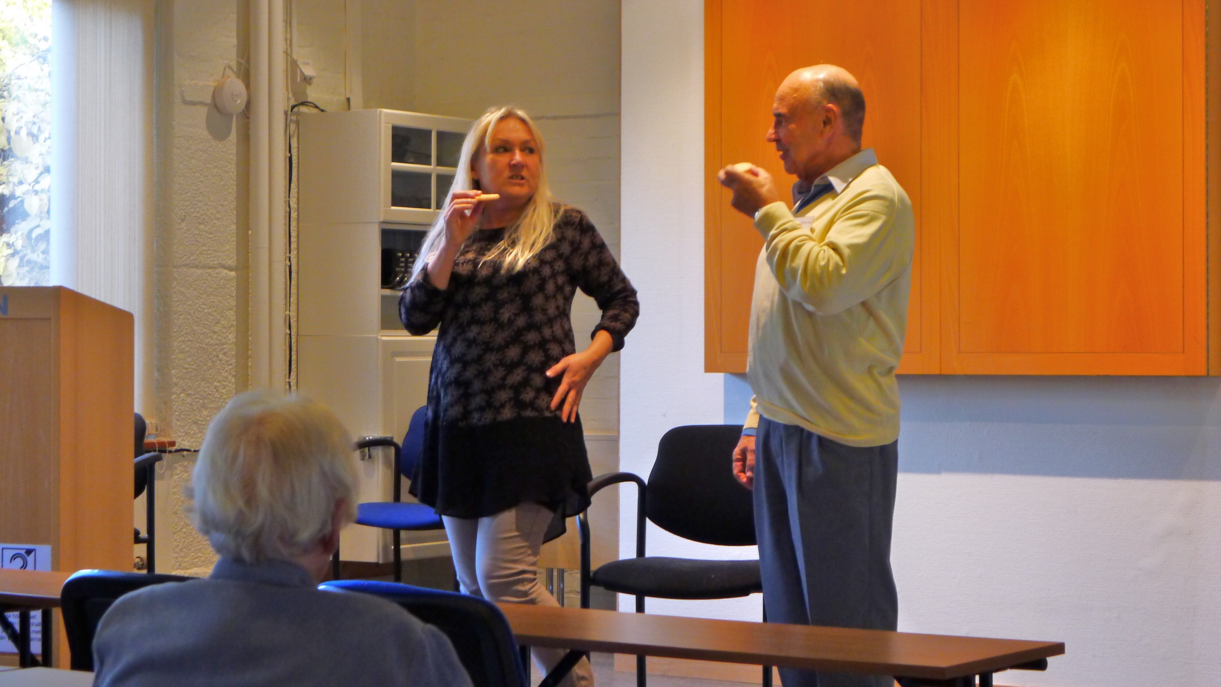 Måndagen den 26 oktober bjöds vi på mycket skratt, igenkännande och insikter i mänskligt beteende när skådespelerskan Eva Granlund från Vadstena gästade vår förening. Vi fick med all önskvärd tydlighet lära oss att kroppsspråket vi visar de första 90 sekunderna vid möte med andra människor ofta är helt avgörande för hur vi bemöts. Sällan har en så stor publik sett så intresserad och glad ut ! Som vanligt avslutades mötet med information, fika, lotterier och trivsamt eftersnack.