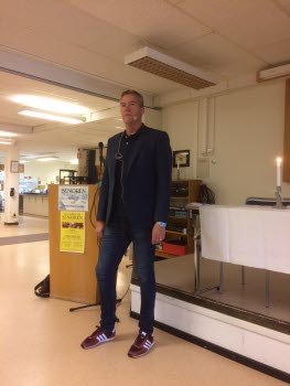 Carl-Johan Bauler, chefredaktör på Norra Skåne, underhåller.