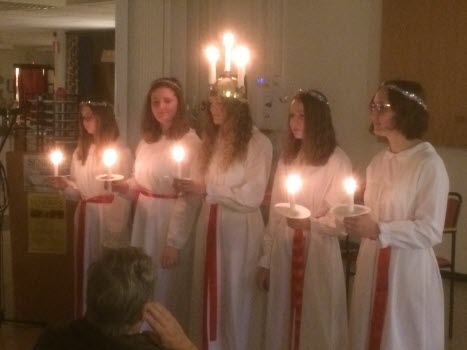 Fem mycket skönsjungande flickor förgyllde tillvaron för SPFs pensionärer vid årets sista onsdagsträff.