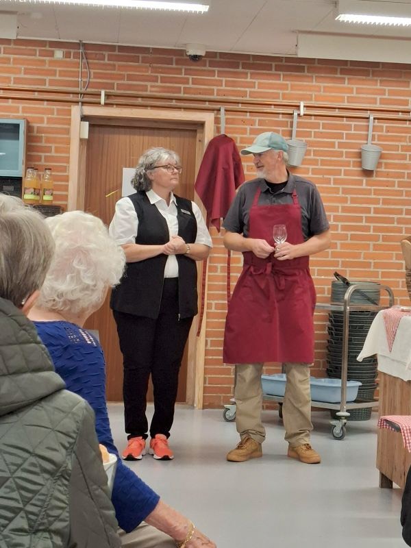 Startade i storm (Amy) och regn, men det blev ändå en mycket intressant rundtur på ön, bl.a. med Guidad rundvandring i Marstal centrum. Körde vidare norrut till Aerö Vingård, där vi fick höra allt om tillverkningen av den lokalproducerade drycken. Tyvärr hindrade vädret oss för uteguidningen. Lunchstopp med god Tapas och dryck på Farmers Market.