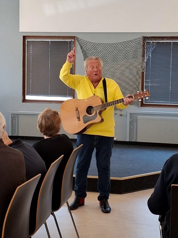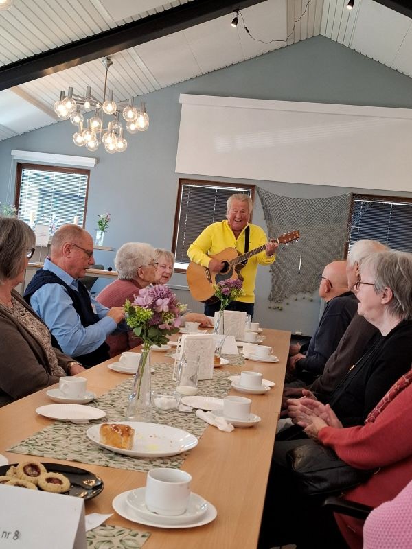 Lasse Berggrensson underhåller med härlig sång och musik.