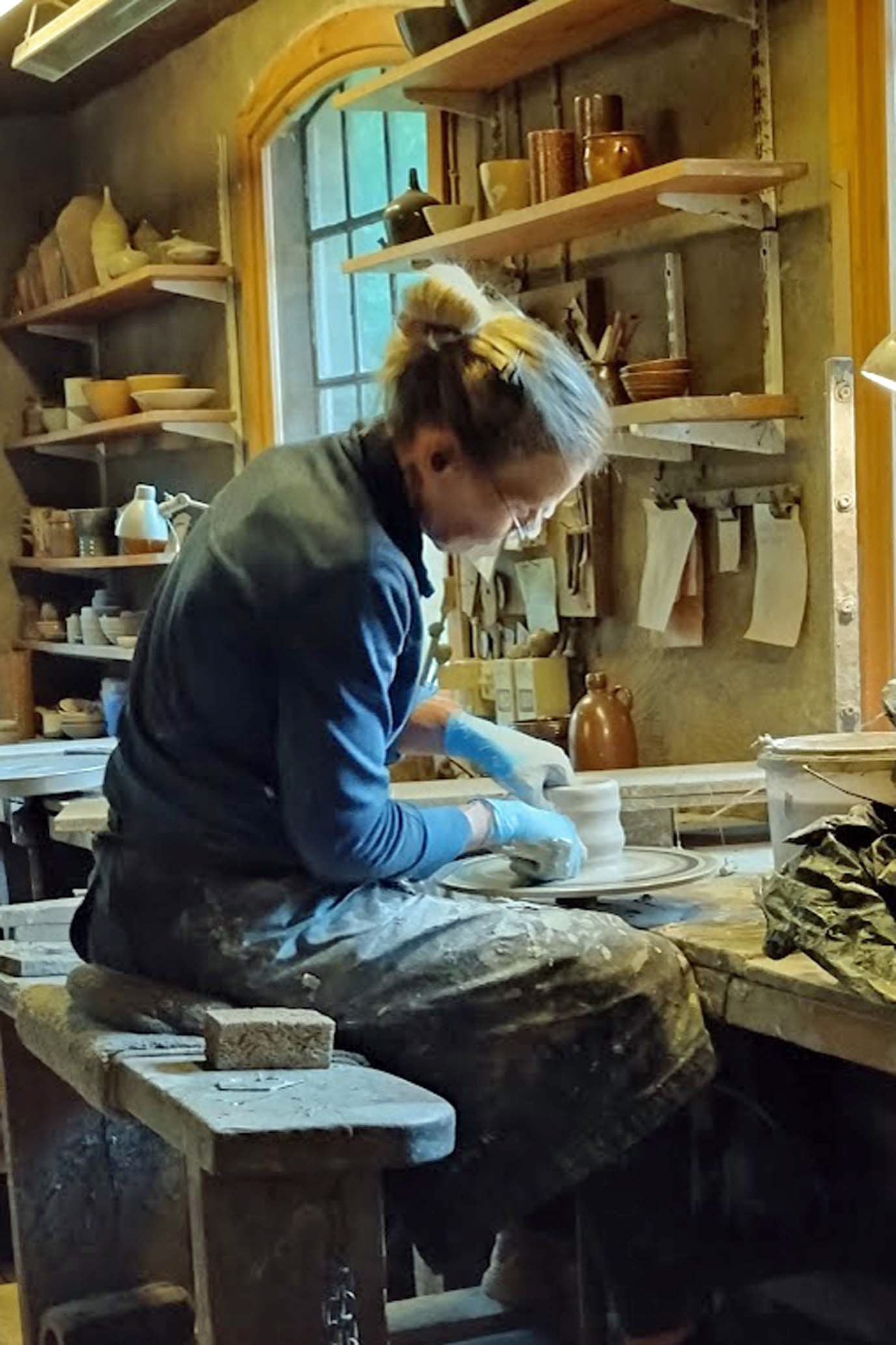 Färden gick vidare till Wallåkra Stenkärlsfabrik. En entusiastisk Åsa guidade oss.