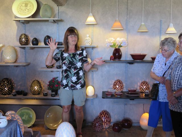 Katarina Gustavsson visade och berättade livligt om sina alster och demonstrerade hur hon skar ut mönster i leran.