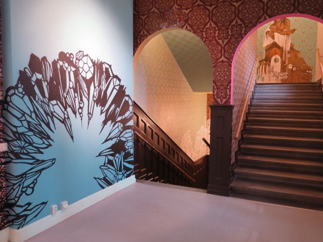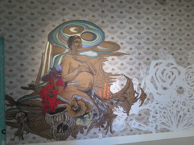 Eftersom jag höll i kameran och inte hade möjlighet att skriva upp konstnärernas namn så följer här foton av skisser av konst i olika stadier utan namngivning eller annan närmare förklaring. (Erna)