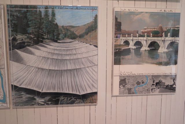 Skisserna föreställer natur och bro som är draperade i tyg!