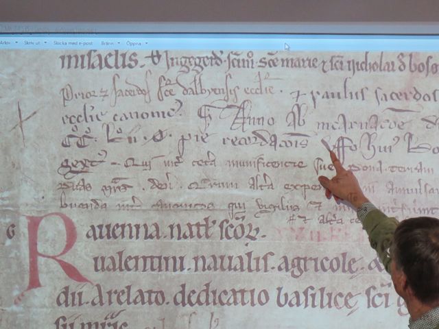 Efter en god lunchbuffé på Valvet gick vi till universitetsbiblioteket, UB, och där fick vi intressant förevisning av vad som finns i en del av samlingarna.