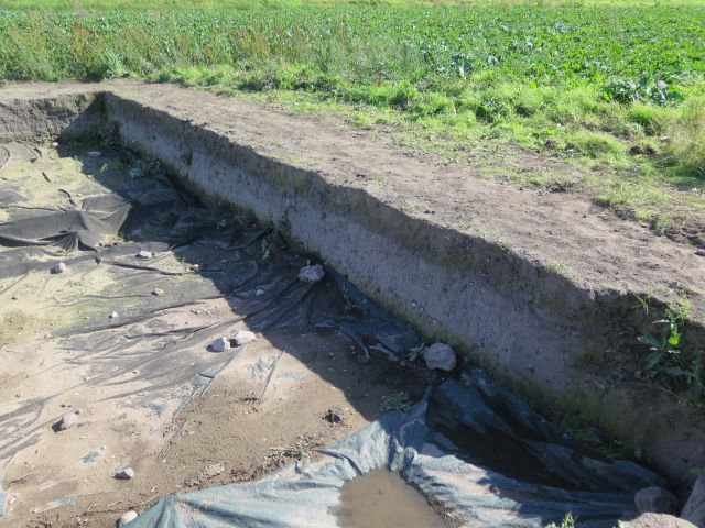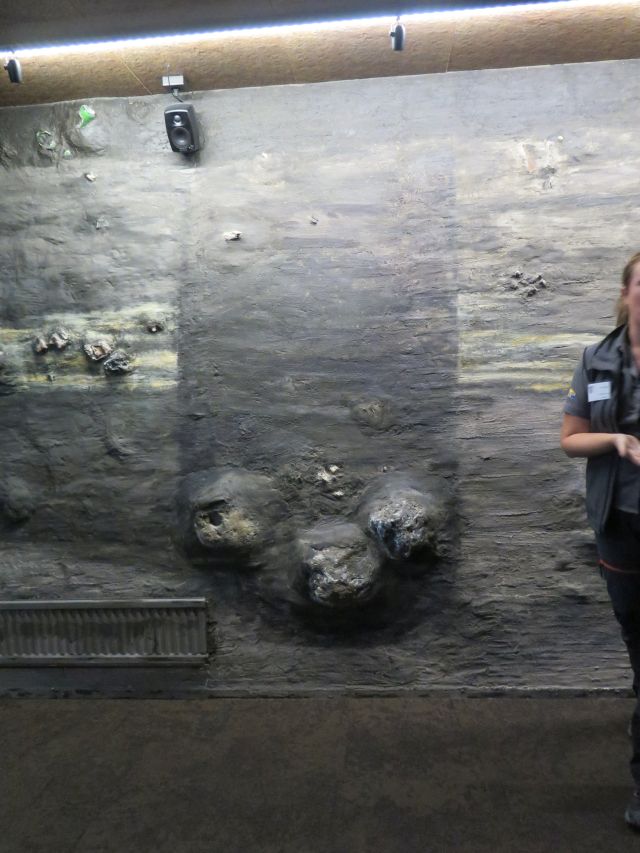 Vi såg en film om utgrävningarna och fick inblick i historiska skeden och händelser. På bilden syns avtryck av stolphål.