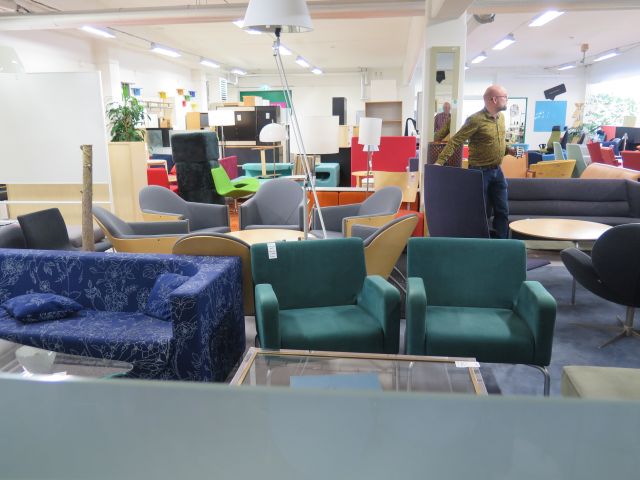 Dagen inleddes med ett intressant besök hos SOECO i Dalby. Företaget köper in begagnade möbler (mest kontorsmöbler) och renoverar dem och säljer vidare.