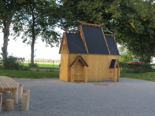 Man tror att ett kulthus har sett som det rekonstruerade huset på bilden. Mycket litet men man har tagit mått efter de funna stolphålen.