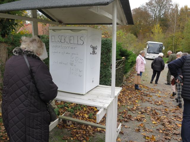 Efter kaffe ute i det vackra men lite kyliga vädret lämnade vi mejeriet.