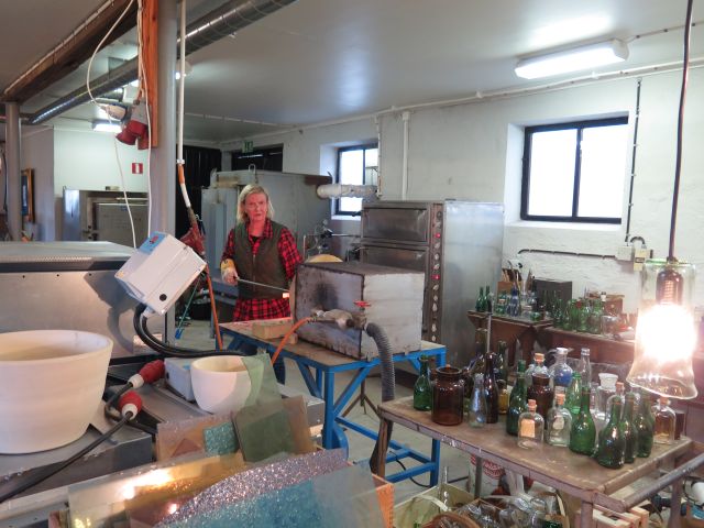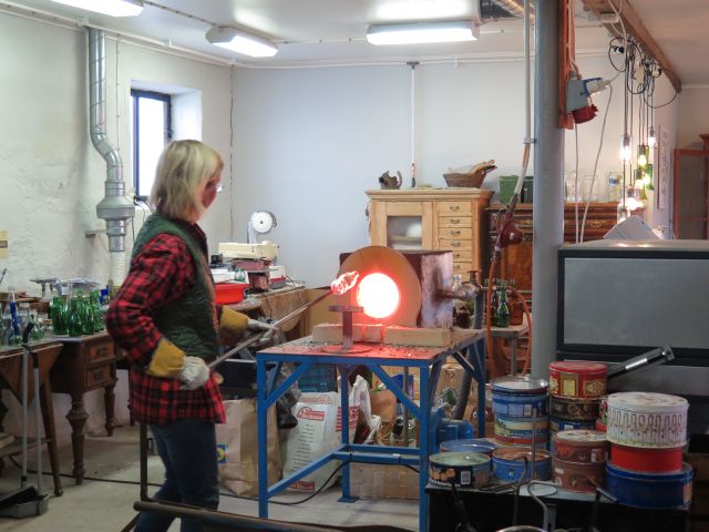 Vi besökte först Elsekjells mejeri med visning och provsmakning. Därefter åt vi lunch på Glashyttans Orangeri och fick se hur gamla glasprodukter omvandlades till vaser och bruksföremål.