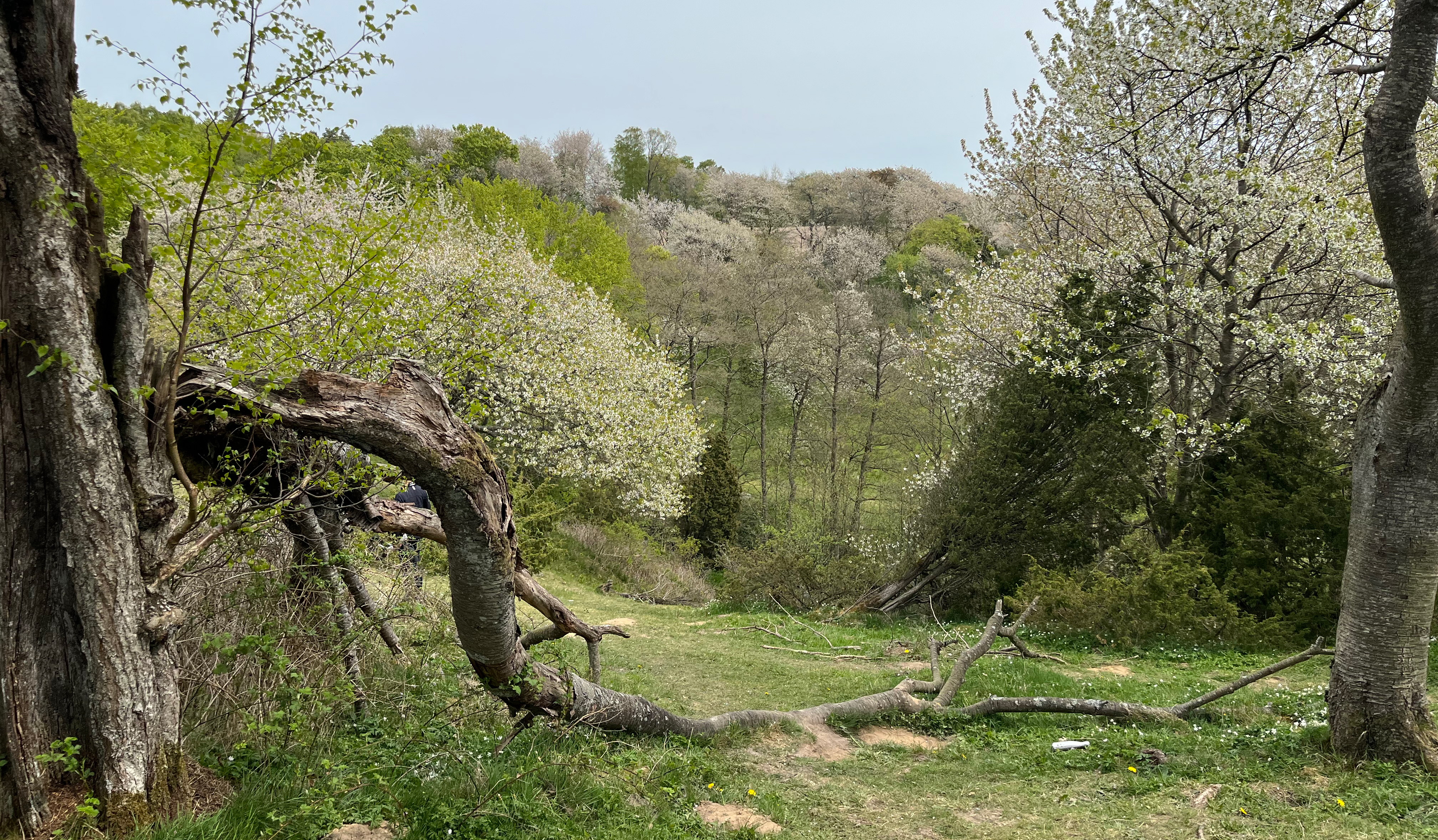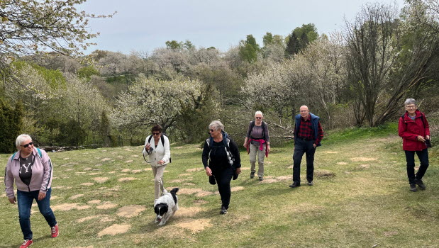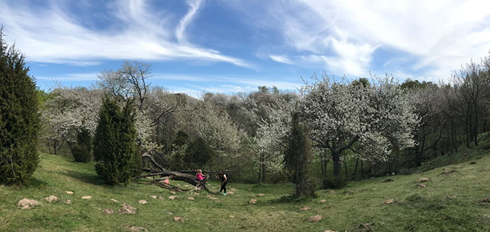 Härlig vandring till Körsbärsdalen i Veberöd, där träden var i full blomning