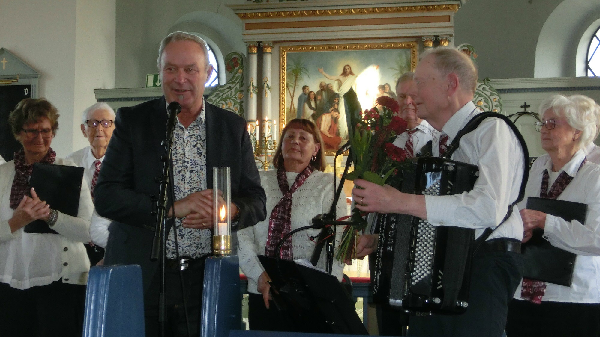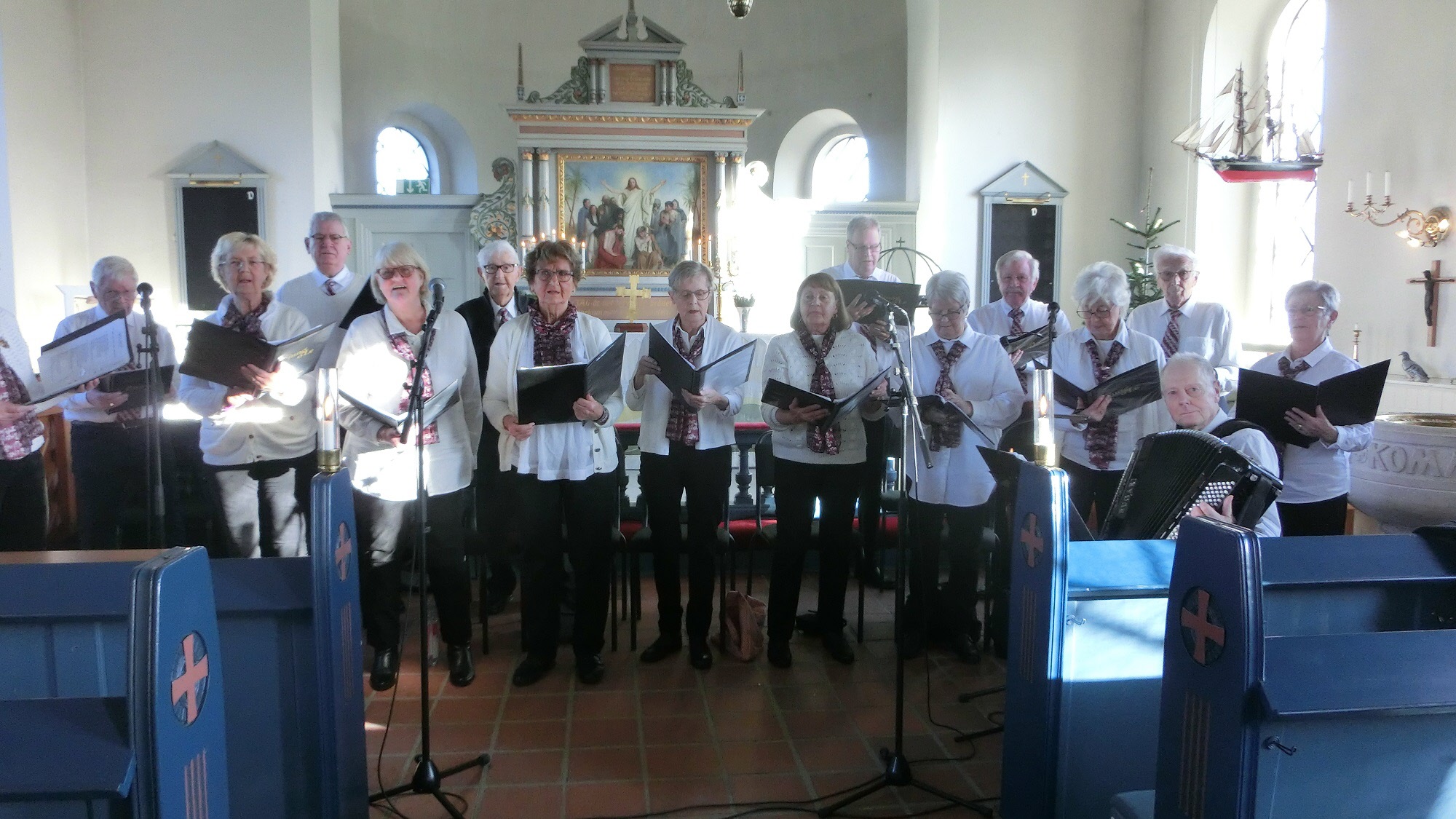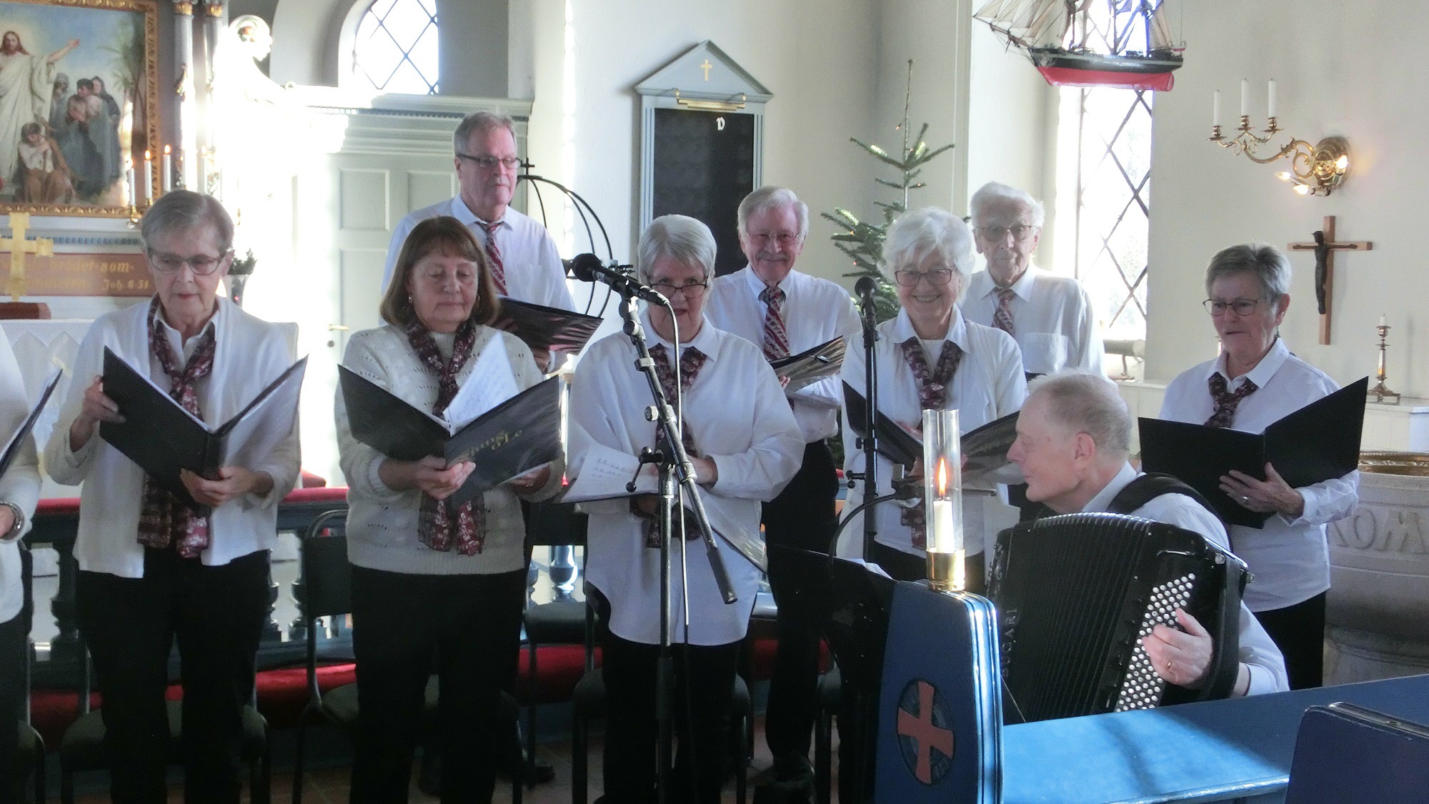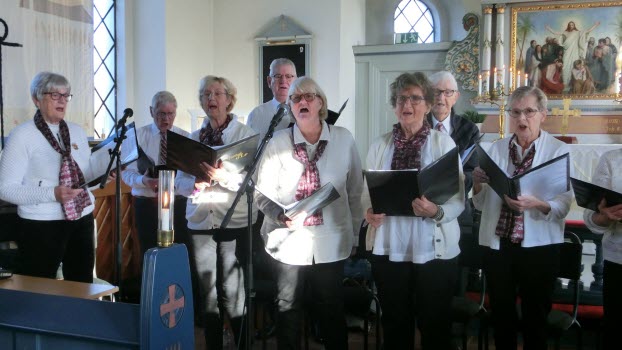 Julkonserten i Östra Torps kyrka 29 november 2021. Sjung och Le sjöng julsånger. Många medlemmar i Udden lyssnade och njöt.