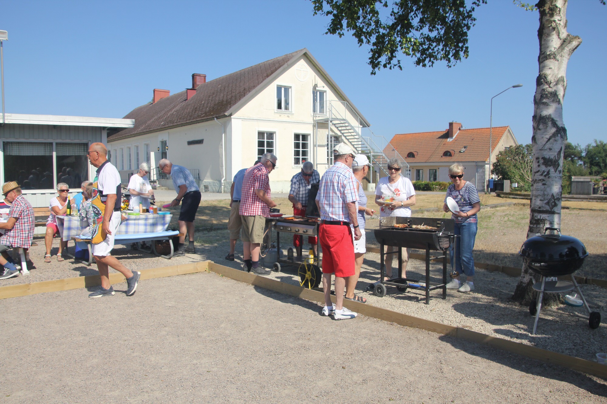 Fredagen den 8 juni hade vi en gemensam grillkväll på Torpalängans uteplats. Var och en hade med sig mat och dryck. Kurt och Curt stod för grillar och kol. Vi var ca 40 medlemmar från föreningen som njöt i den härliga sommarkvällen. Efter förplägnaden provade många på att spela boule. Här nedan finns ett bildkollage från träffen. Bakom kameran: Per Nilsson.