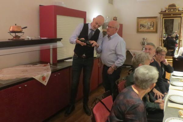 Nu är det dax för vinprovning med Erik från Nielsen, Johan hjälper till att servera