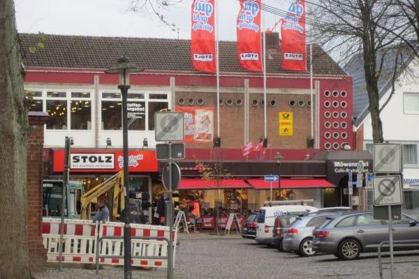 Framme i Burg, torget med alla affärer