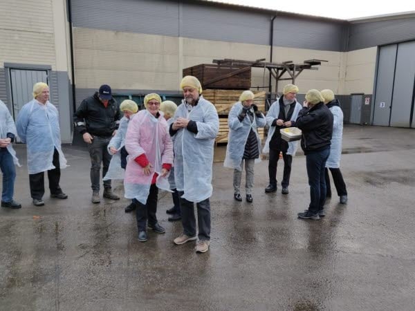 Vi klär oss för inträde i "livsmedelsfabriken", hårnät och rock ett måste!