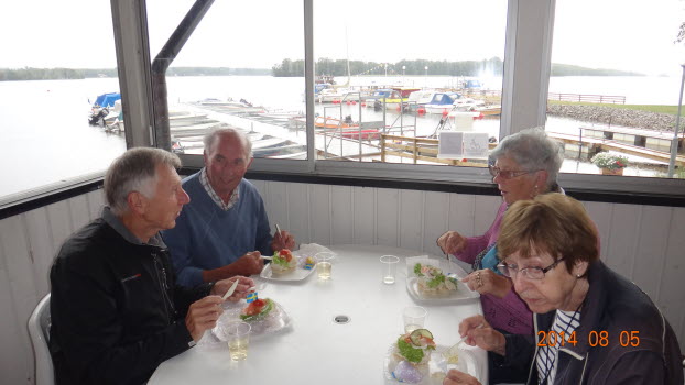 eftermiddag i augusti. Men vi fick låna en veranda vid Klackabackens båthamn så det ordnade sig.