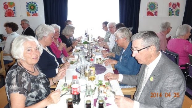 Vi åt varmrökt lax med tillbehör. Senare blev det kaffe och kaka.