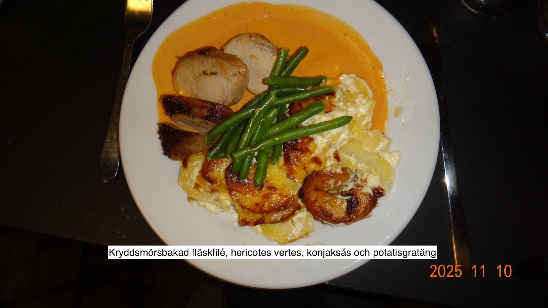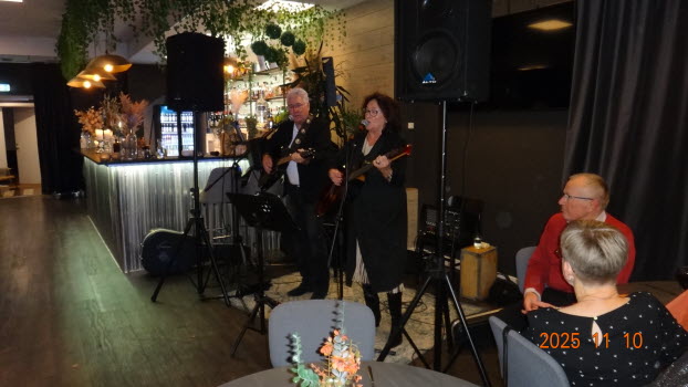 Ulf o Marlene kom till oss och sjöng country- o 60-talsmusik. Vi serverades kryddsmörbakad fläskfilé, hericortes vertes, konjaksås o potatisgratäng och kaffe o kaka.