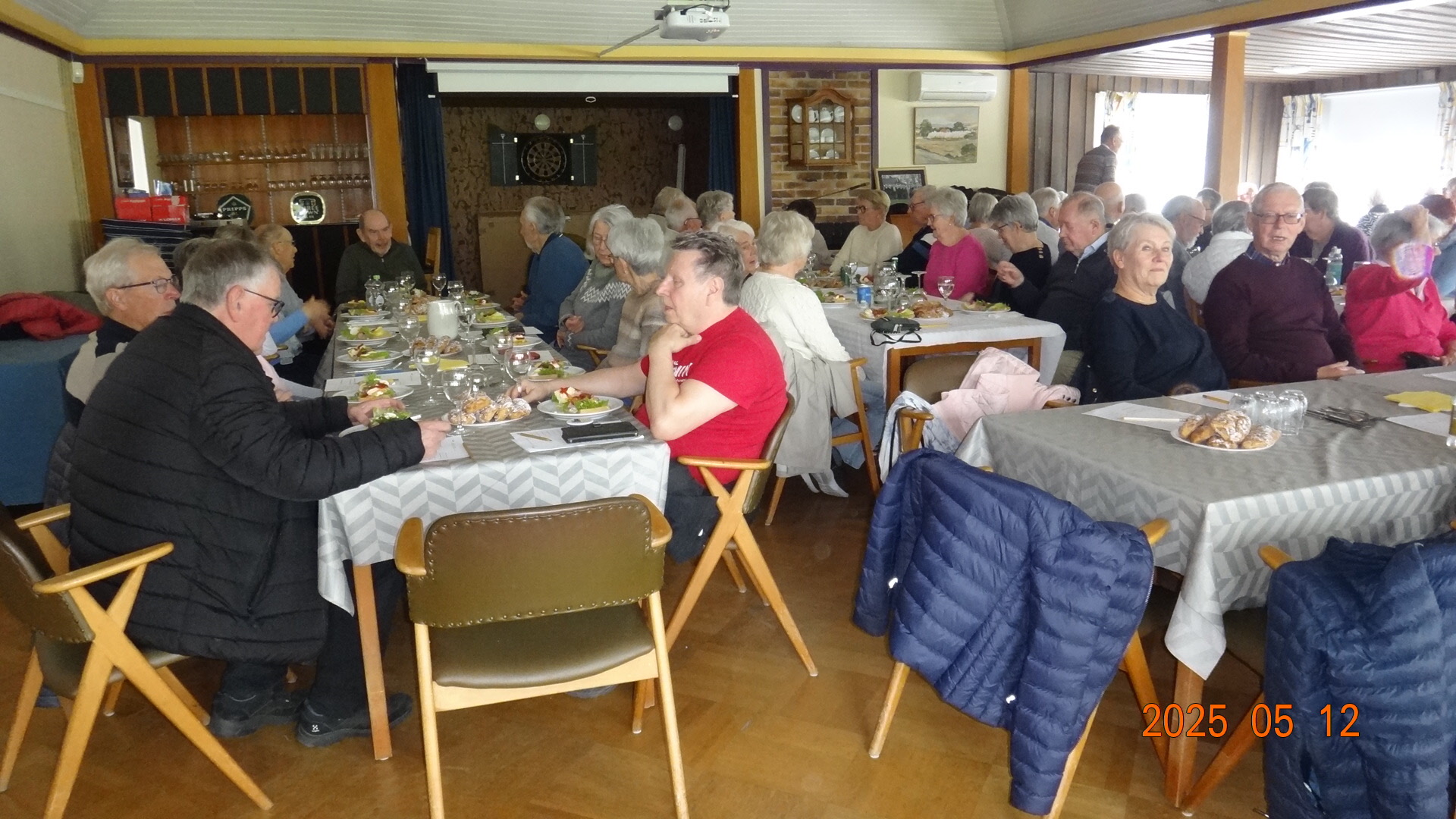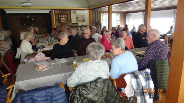 För första gången förlade vi vårt månadsmöte i maj i Lions Strandstuga. Fullt hus blev det. Vi var 89 medlemmar som serverades landgång, wienerbröd, kex och kaffe. Landgångarna gjordes av vår egen krögare Dennis med hjälp av duktig personal från vår egen förening. En tipspromenad förlades före kaffet. 6 st vinnare korades och 2 st tröstpriser lottades ut.