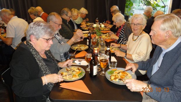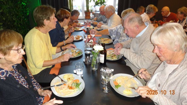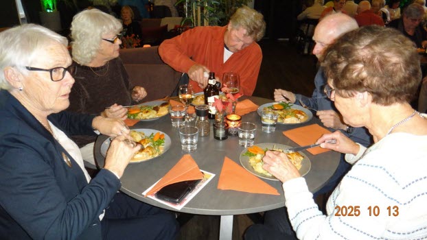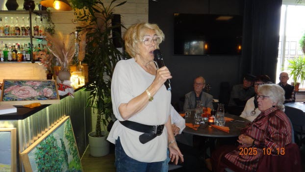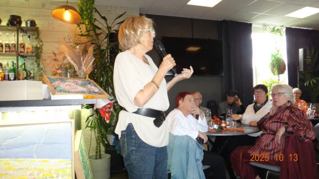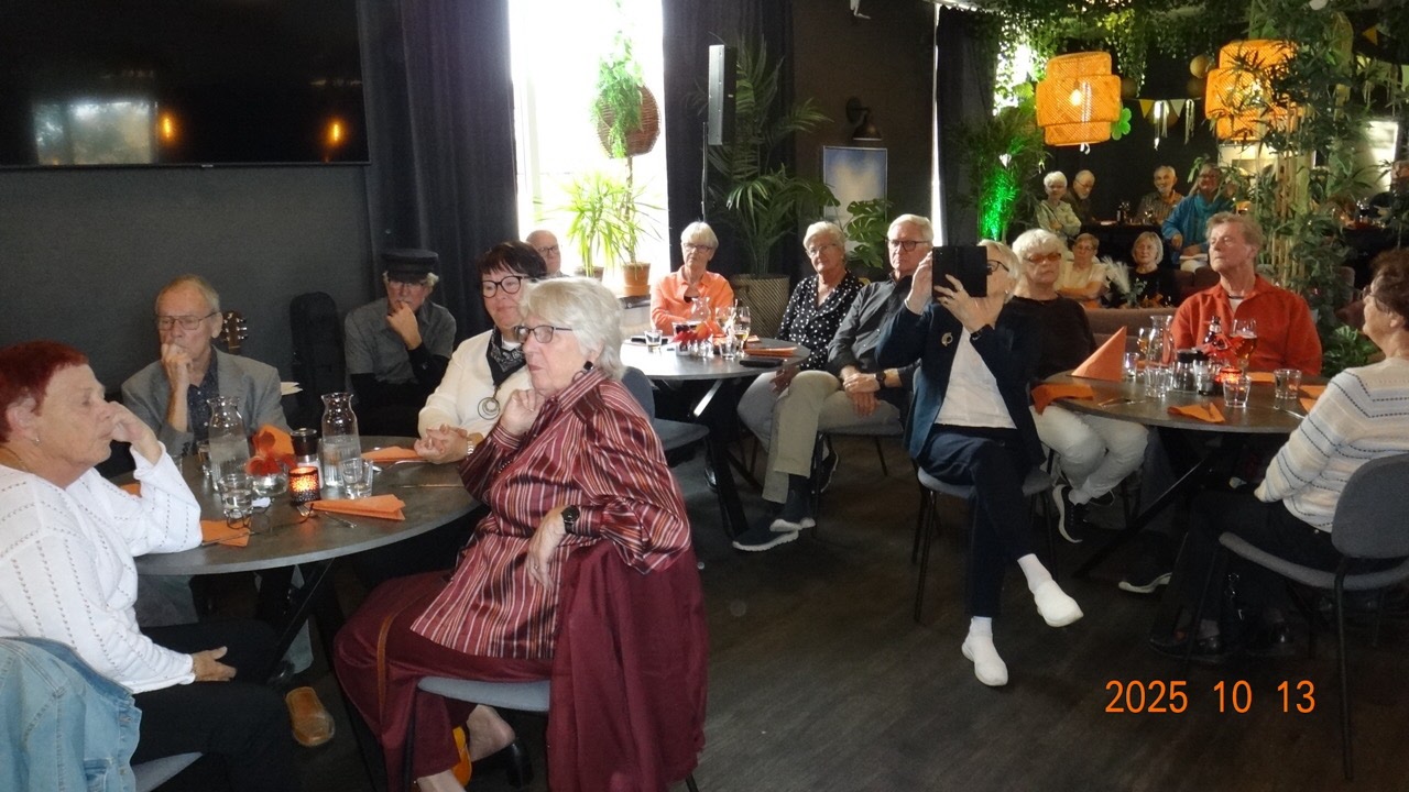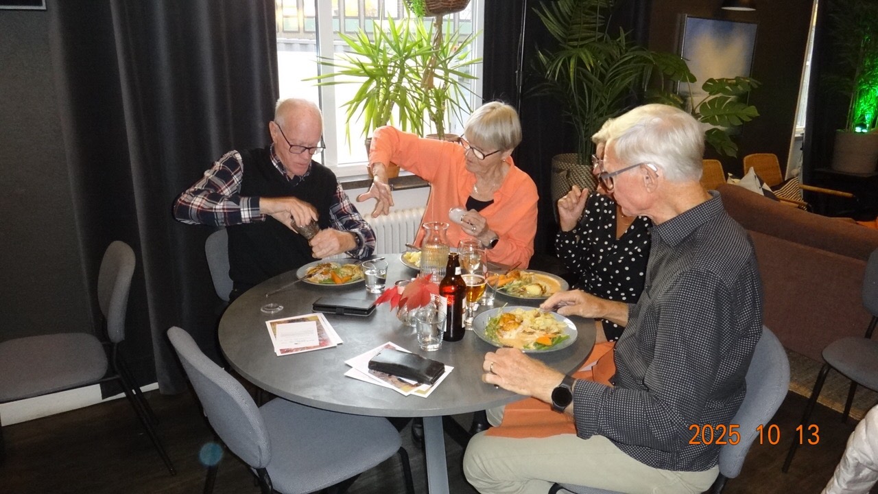 Till ett fullsatt Hotell Iföhus kom konstnären Maria Blombärg och berättade om sitt alster och hennes man fiskaren Hånsa sjöng om sitt ålster. Till maten serverades ugnstekt benfri kycklinglårfilé, grönsaker, konjaksås och råstekta potatis, kaffe o kaka. Mycket uppskattat, både maten framträdandet.